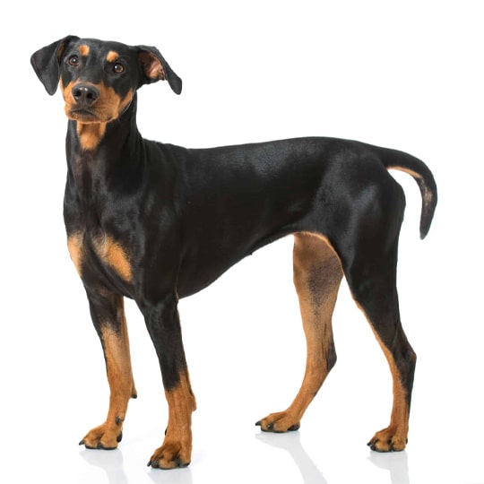 De esta raza se diferencia principalmente por el pelaje. El Pinscher alemán se encuentra ya en documentos del siglo XIV y tiene registro en todas las organizaciones cinológicas internacionales que existen.