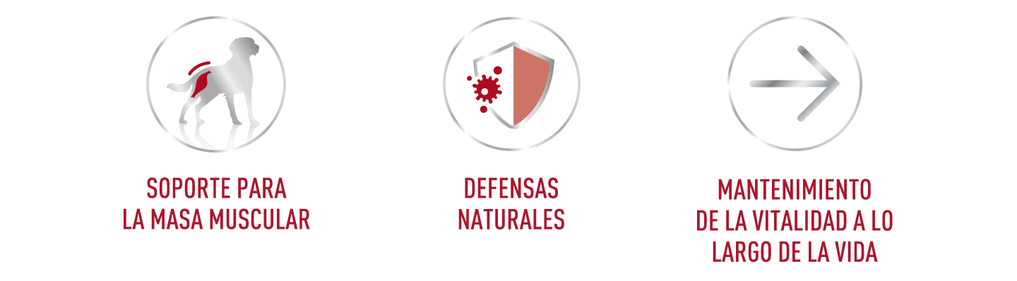 Los perros senior necesitan hacer ejercicio regularmente para mantener la masa muscular. Gracias a su contenido específico en proteínas de alta calidad, este alimento está formulado para ayudar a su perro maduro a mantener la masa muscular. Además, el estilo de vida activo de su perro senior puede exponerlo a elementos ambientales que pueden debilitar su sistema inmunitario. Para ayudar a mantener las defensas naturales de su perro, esta fórmula está enriquecida con prebióticos y una combinación de vitaminas, incluidas las vitaminas C y E.