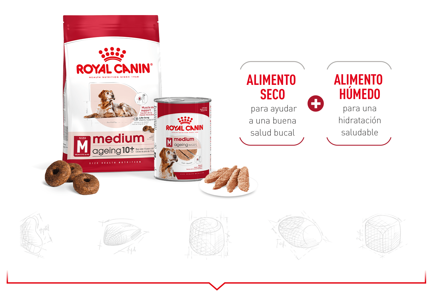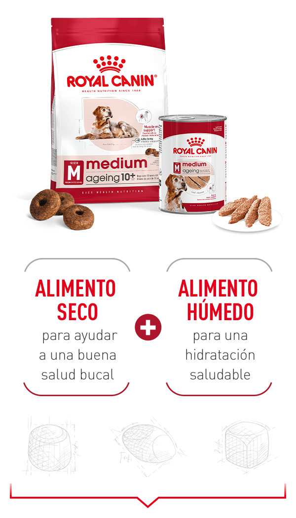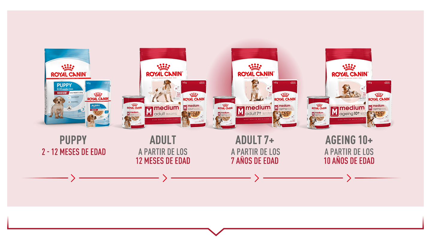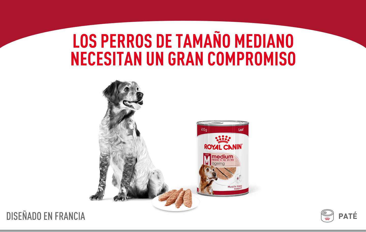 Royal Canin Medium Ageing 7+ es un alimento húmedo completo para perros de raza mediana (11-25 kg) mayores de 7 años, formulado para satisfacer sus necesidades nutricionales en la fase senior.