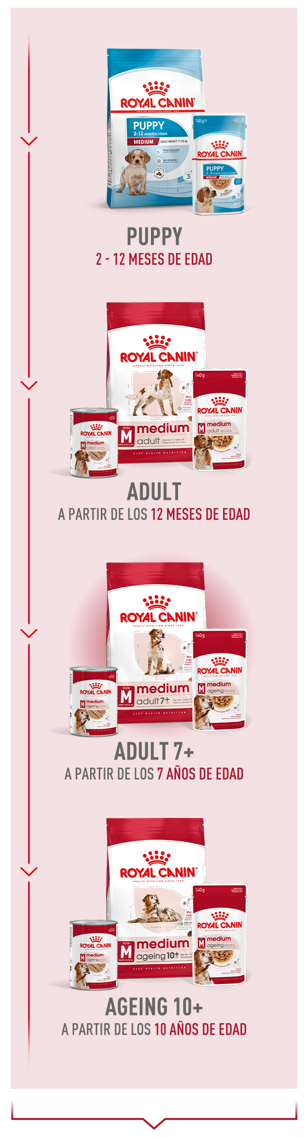 Por eso, la fórmula MEDIUM de la gama Size Health Nutrition de ROYAL CANIN® está cuidadosamente adaptada a sus necesidades específicas.