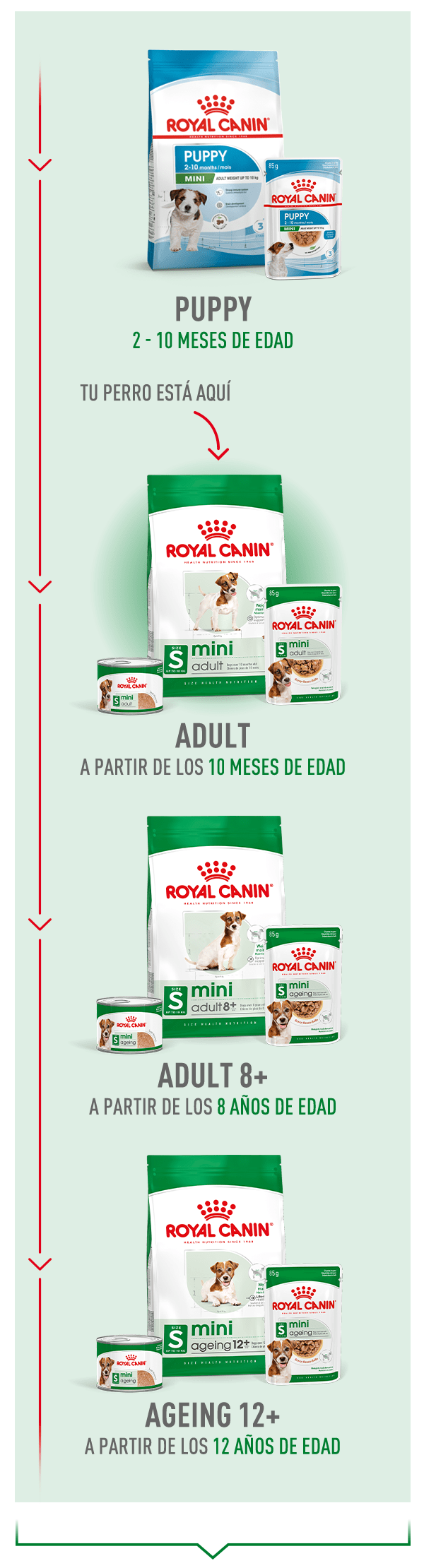 Por eso, la fórmula MINI de la gama Size Health Nutrition de ROYAL CANIN® está cuidadosamente adaptada a sus necesidades específicas.