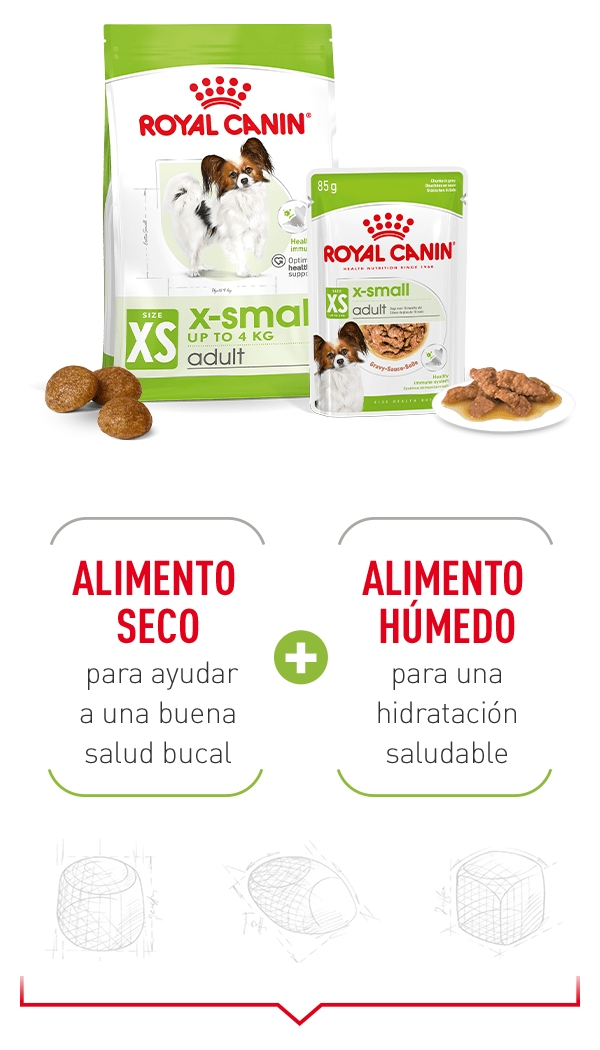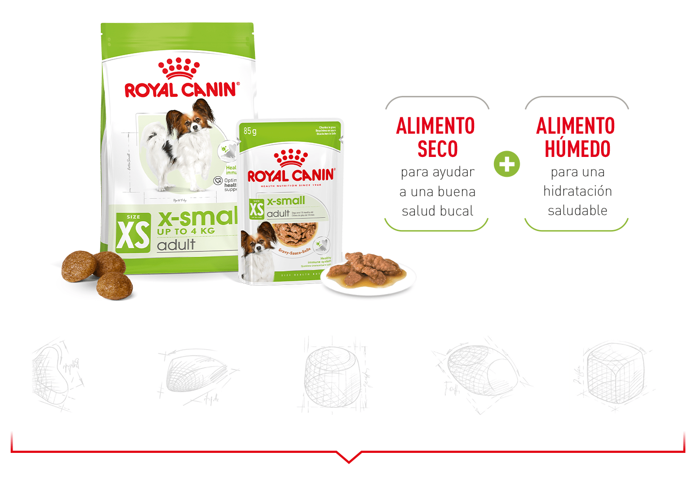 Royal Canin X-Small Adult es un alimento húmedo completo para razas mini (hasta 4 kg) de más de 10 meses de edad, formulado para satisfacer las necesidades nutricionales de estos perros en la edad adulta.