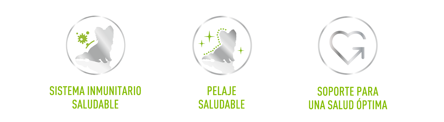 - Nutrientes que favorecen una piel sana y un pelaje brillante.