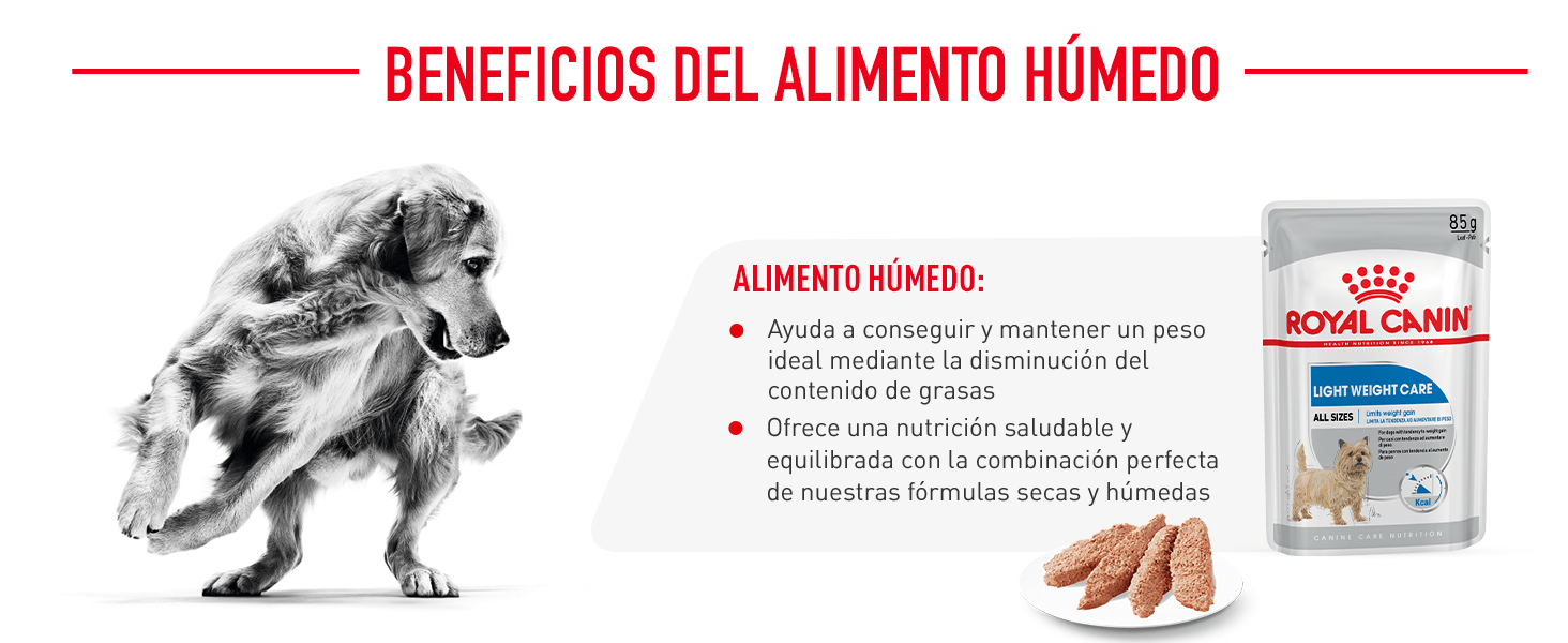 Una comida light rica en proteínas bajas en grasa para adultos de razas grandes con tendencia al sobrepeso.