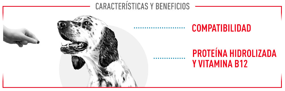 Proteína hidrolizada y vitamina B12: adecuadas para perros con sensibilidades o alergias alimentarias.