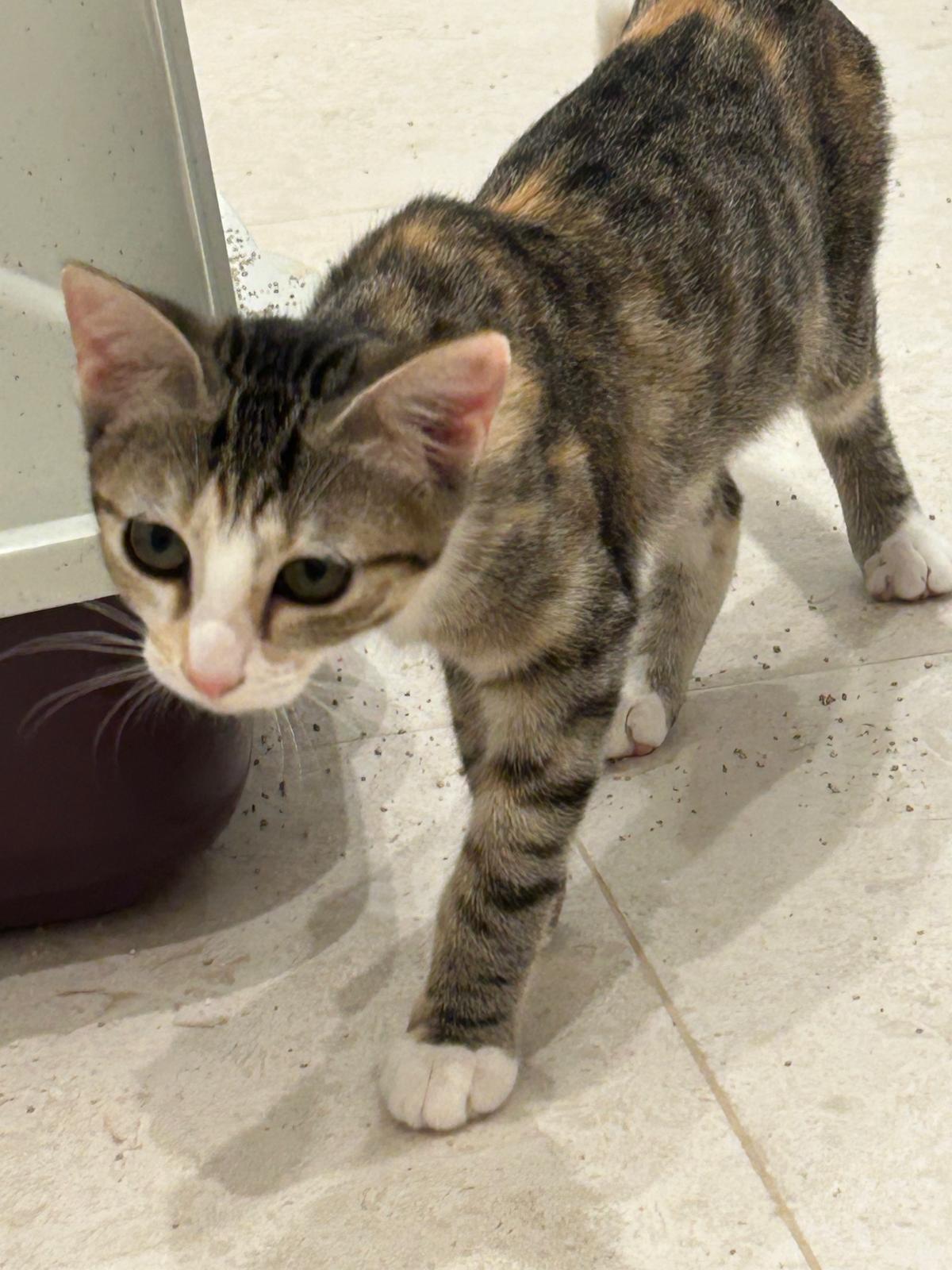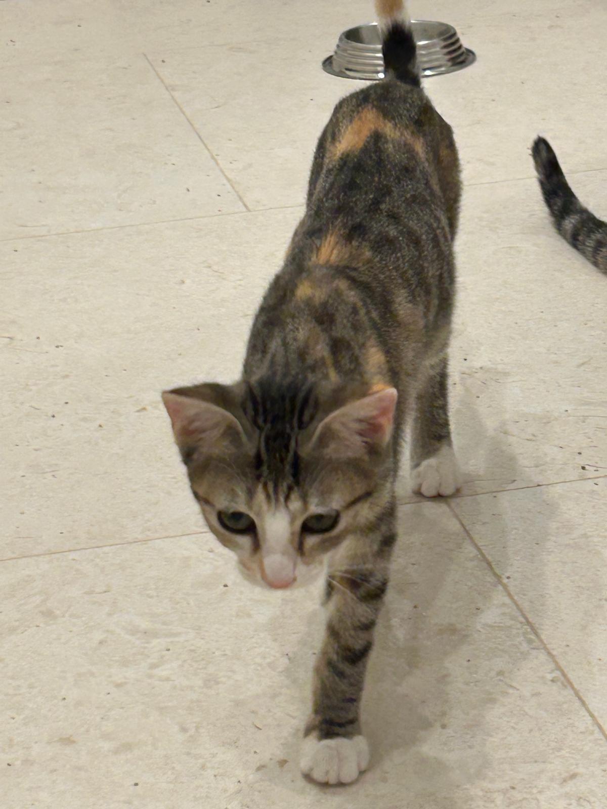 A Carla le gusta lo mullido: su travesía comenzó en una obra abandonada donde, junto a su mamá Pispas y sus hermanitos, buscaba un hueco calentito para dormir. El destino quiso que el equipo de SOS GREDOS apareciera a su rescate. Hoy, con 3 meses, esta minina disfruta de una casa de acogida… y de la cama rosa más esponjosa que puedas imaginar. Carla necesita un hogar que valore las siestas compartidas y los despertares slow. Ideal para familias que pasen tiempo en casa o para quien quiera un “calienta-almohadas” profesional. Otro gatito equilibrado sería un plus para sus juegos pausados. ¿Te imaginas verla despertar cada mañana entre tus mantas? Adoptar a Carla es sumar calma, ternura y esa sensación de paz que solo da un ronroneo sincero.