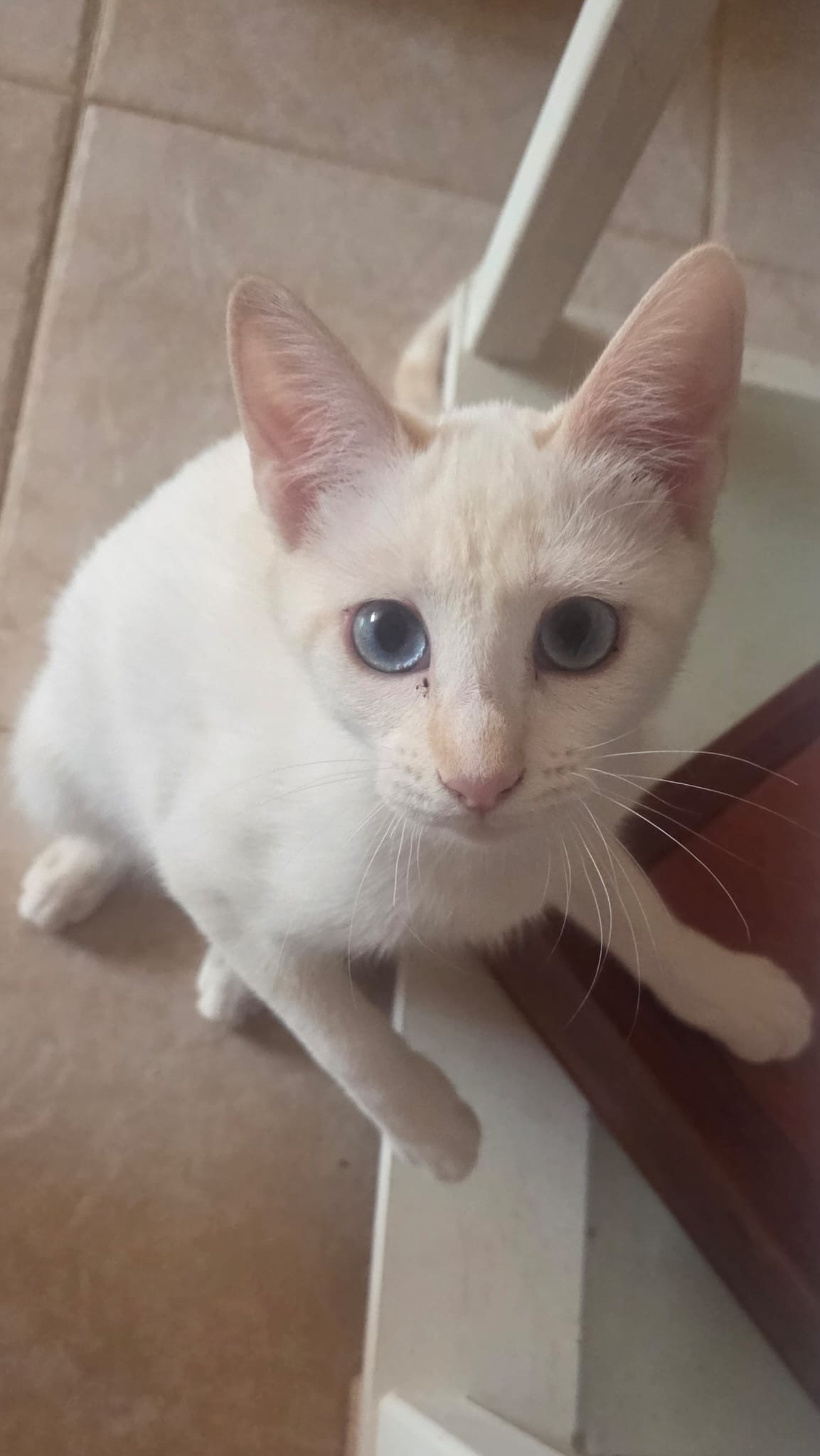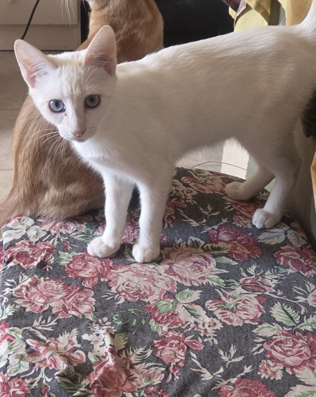 Este pequeño copito de nieve fue rescatado junto a su mamá Pispas y a sus hermanos por el equipo de SOS GREDOS. Los encontraron acurrucados en un rincón, intentando sobrevivir. Hoy, con solo tres meses, este bebé felino vive en una casa de acogida donde descubre el mundo a zarpazos curiosos y ronroneos interminables. Ahora necesita un hogar tranquilo, con personas pacientes que le regalen la estabilidad que todo cachorro necesita. Le encanta la compañía, así que sería feliz con otra mascota equilibrada o con humanos que pasen tiempo en casa. ¿Te imaginas sus ojos oceánicos mirándote cada mañana? Adoptarlo es darle la oportunidad de crecer rodeado de amor y seguridad… y, de paso, llenar tu vida de juegos, siestas compartidas y momentos de pura ternura.