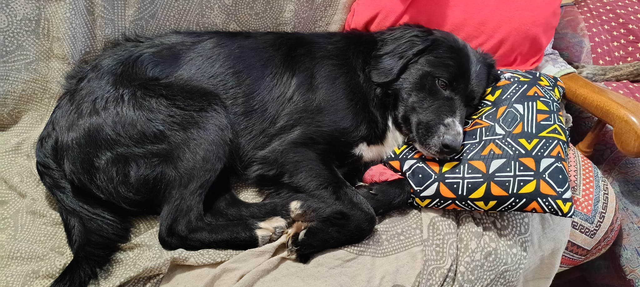 Hola! Me llamo Río, me encontraron vagando por un pueblito del Tietar con otra perrita. La perrita encontró una protectora y yo estoy de acogida temporal en una casa. Tengo alrededor del año y peso unos 16 kg, soy de tamaño mediano. Soy majísimo y sociable con otros perris, de hecho convivo de maravilla con una galga. Tengo mucha curiosidad, soy listo y entiendo todo a la primera. Soy super cariñoso y curioso. Busco una casa y una familia con la que convivir, no quiero vivir solo en una finca. Si alguien me quiere adoptar definitivamente que se ponga en contacto con nosotros