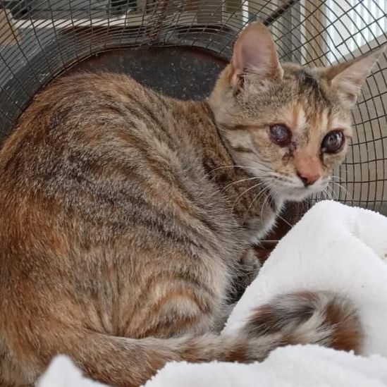Aya es una gatita super tranquila y cariñosa. Es ciega de nacimiento aunque posiblemente tenga algo de visión en uno de los ojos, igualmente esto no le impide hacer vida ya que ella se pasea y entre su olfato y sus bigotes va orientándose estupendamente. Le encanta que le acaricien, podría estar todo el día tocándola y ella tan feliz. Sabemos que por esto le va a costar encontrar un buen hogar y ojalá no sea así porque es taaan amorosa que se merece ser feliz...