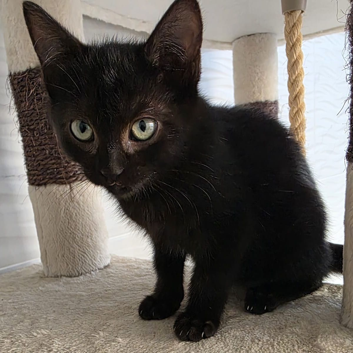 Panty vino junto a sus hermanitos, eran muy miedosos pero con cariño ya juegan con nosotros, ronronean y disfrutan de las caricias!!! Esta pequeña morena no puede ser más preciosa y esperamos que encuentre un buen hogar en el que ser feliz como se merece.
