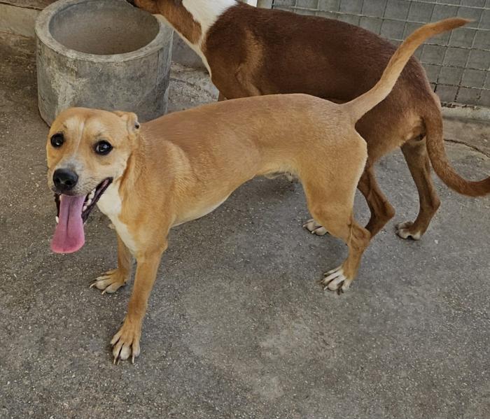 El y sus dos hermanas iban corriendo por los campso de Albatera, muertos de calor y a pleno sol nos dieron el aviso. Han llegado en buenas condiciones, se nota que han tenido hogar pero que no han salido de ahi..ya que son adorables con la gente , con niños, no aptos con gatos pero no saben caminar con correa, con lo cual nos indica que nacieron en algun campo del cual no salieron nunca. Un poco dominantes con otros perretes... pero nada que no se les pueda corregir, ya que es solo porque no han convivido con otros.