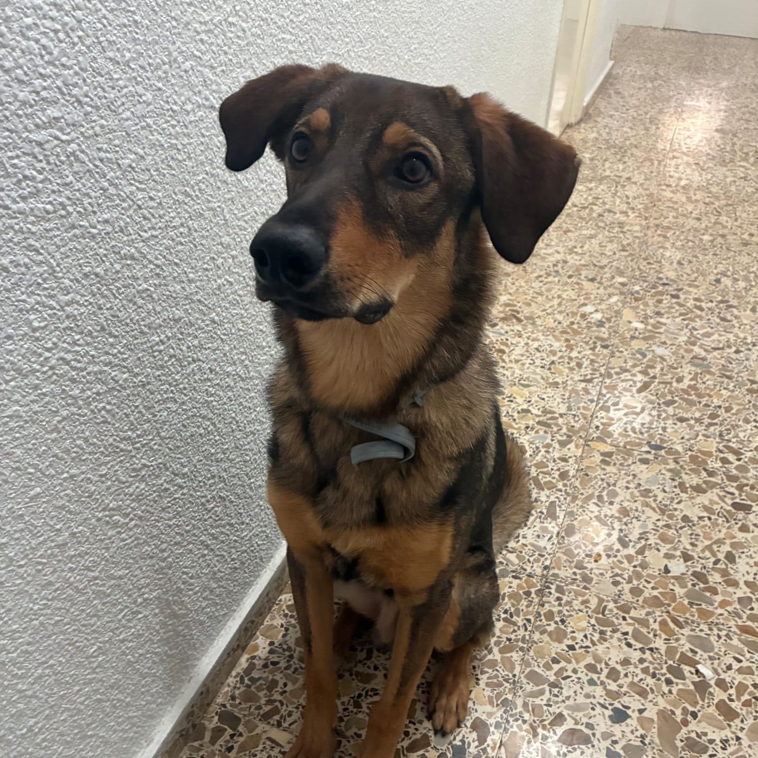 Milo es un perrito muy bueno. Hace sus necesidades fuera de casa y se porta genial. Tiene chip y vacunas al día. No está esterilizado, pero se da en adopción esterilizado. Se lleva bien con niños, ya que ha convivido con ellos, y también tolera a los gatos y otros animales.