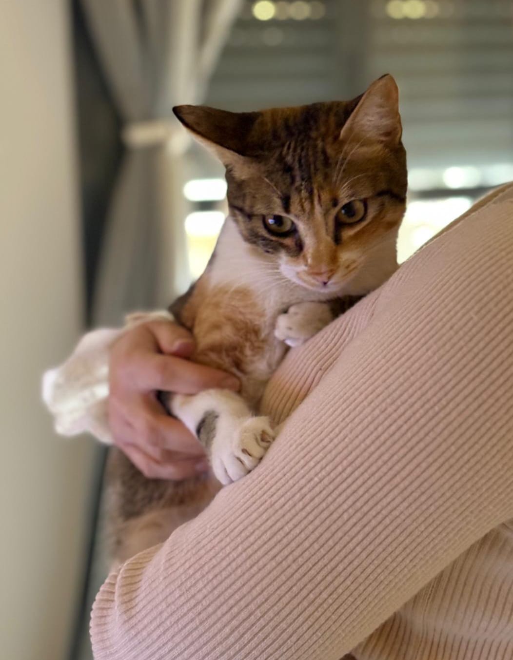 Minerva fue rescatada del lugar de trabajo de su casa de acogida en noviembre, donde entró buscando refugio. Entró en el transportin sin problemas y desde entonces busca un hogar.