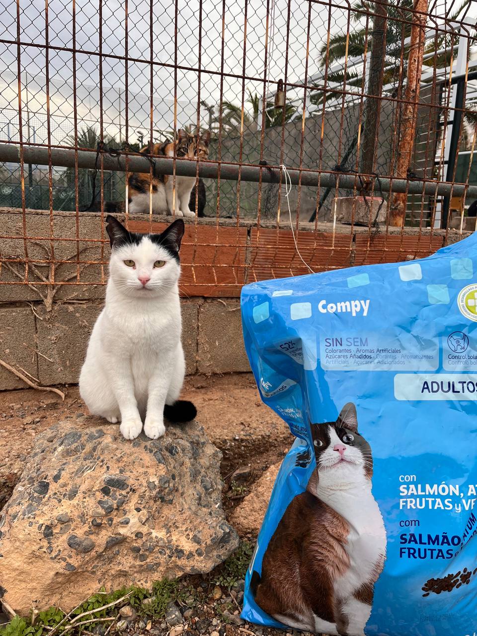 Fue abandonada en la colonia junto con un montón de bebés. Estuvo en un agujero de la colonia porque tenia miedo pero poco a poco fue saliendo y sociabilizando con nosotras y otros gatos. Necesita un hogar es muy cariñosa y sociable. Y le encanta comer