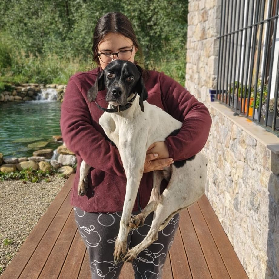Este pequeño apareció en mitad del campo muy delgado y muerto de hambre, seguramente deshecho de la cacería, es muy noble y cariñoso, tamaño pequeño-mediano. Se encuentra actualmente en Sevilla, pero puede viajar, urgente si no volverá a la calle.