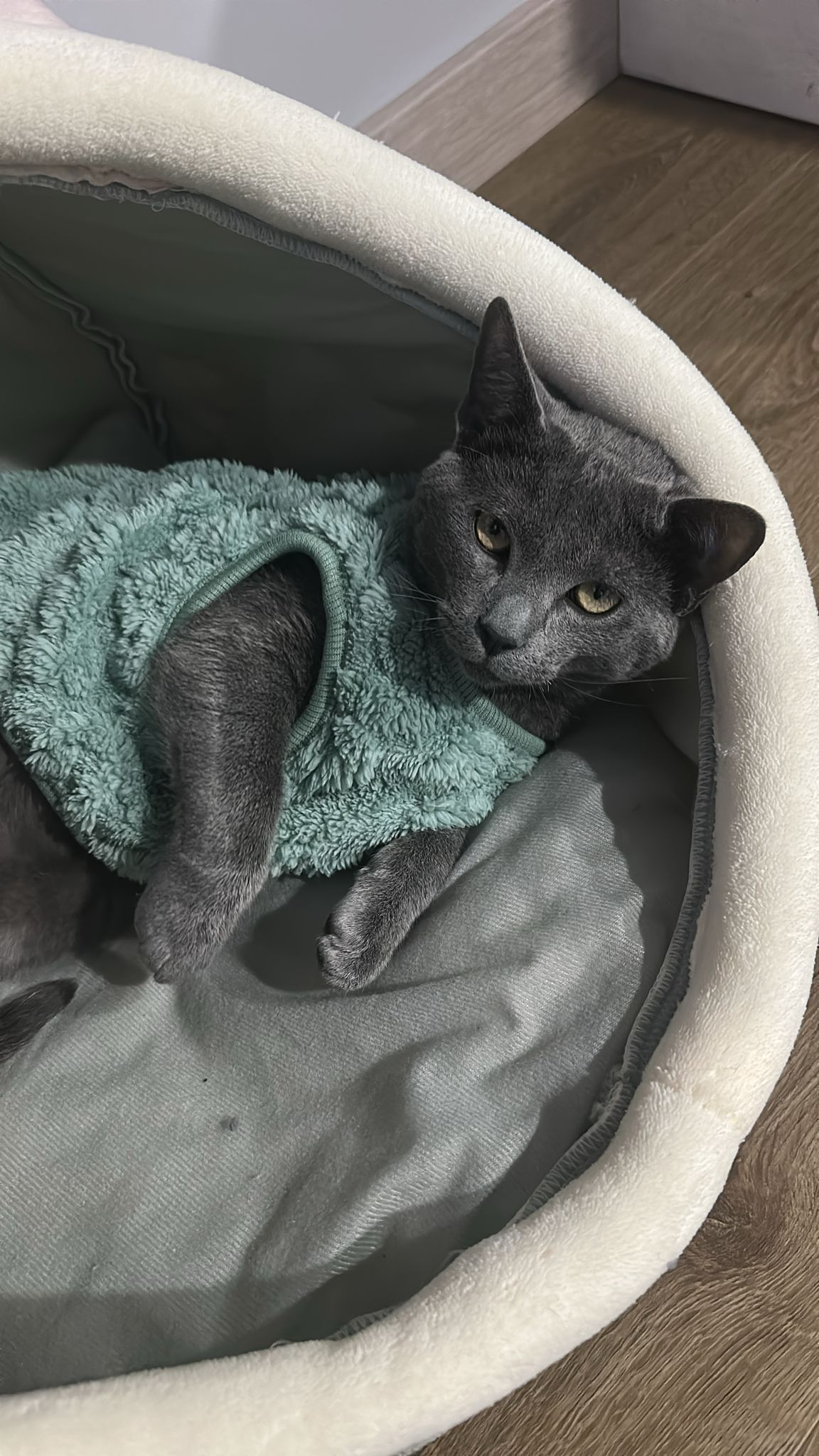 *RUMI* AZUL RUSO- Solo Asturias Sexo: macho Raza: Azul Ruso Fecha de Nacimiento: 12.07.2025 Carácter: cariñoso, dulce, muy bueno.
