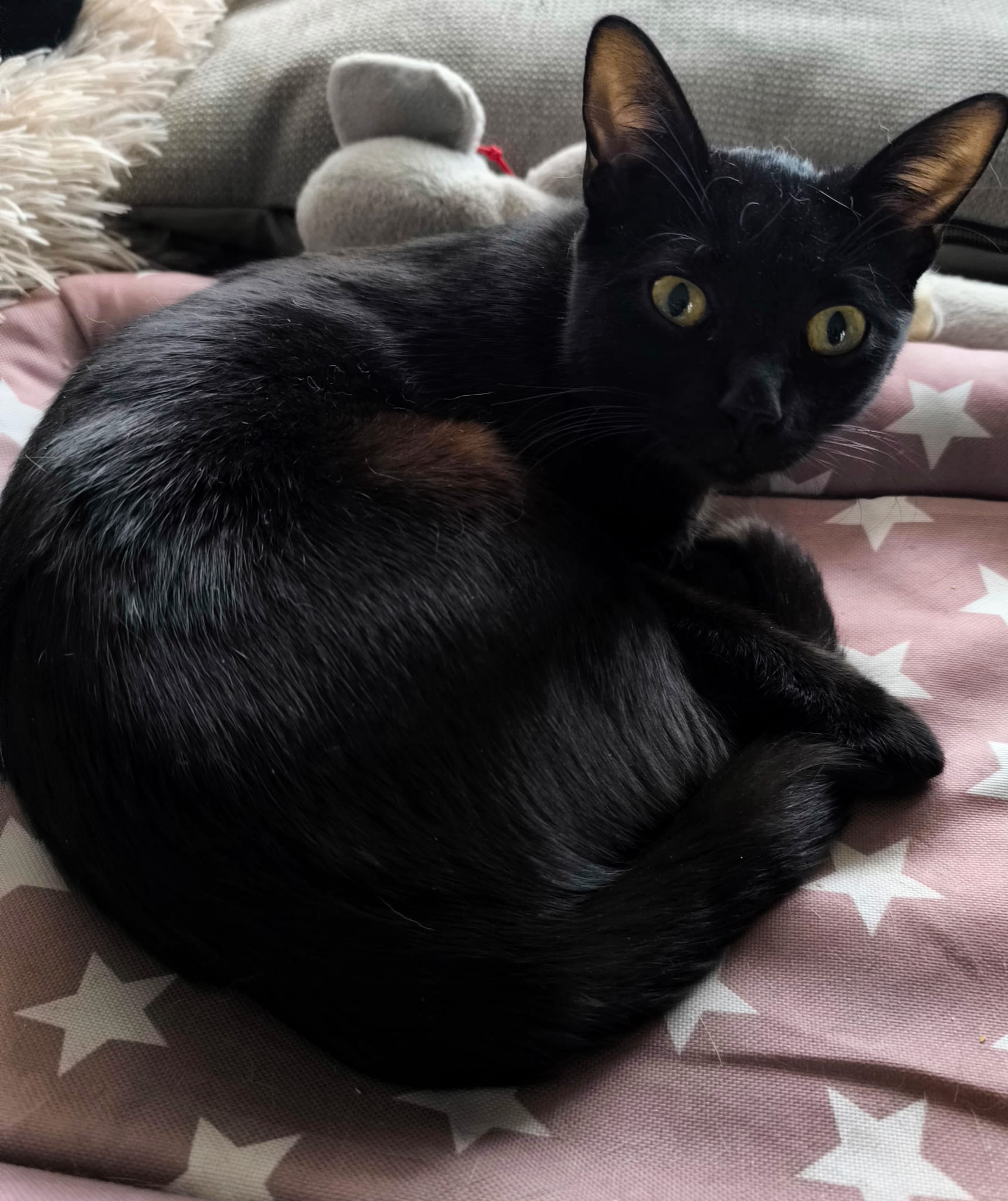 Son una camada de 7 gatitos: British, AENA, Iberia, Cook, Panam, Monarch y Ryanair. Recogidos de un jardín. Llegaron con los ojitos un poco mal. Ya están todos mejor. Son muy buenos y ronroneadores.