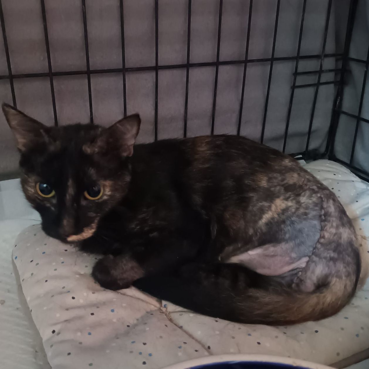 Mirenchu es una auténtica luchadora. Tuvo que someterse a una cirugía muy complicada en la que le amputaron una patita. Paso a paso, se está adaptando a su nueva vida y vuelve a ser esa gata curiosa y cariñosa que nos roba el corazón.