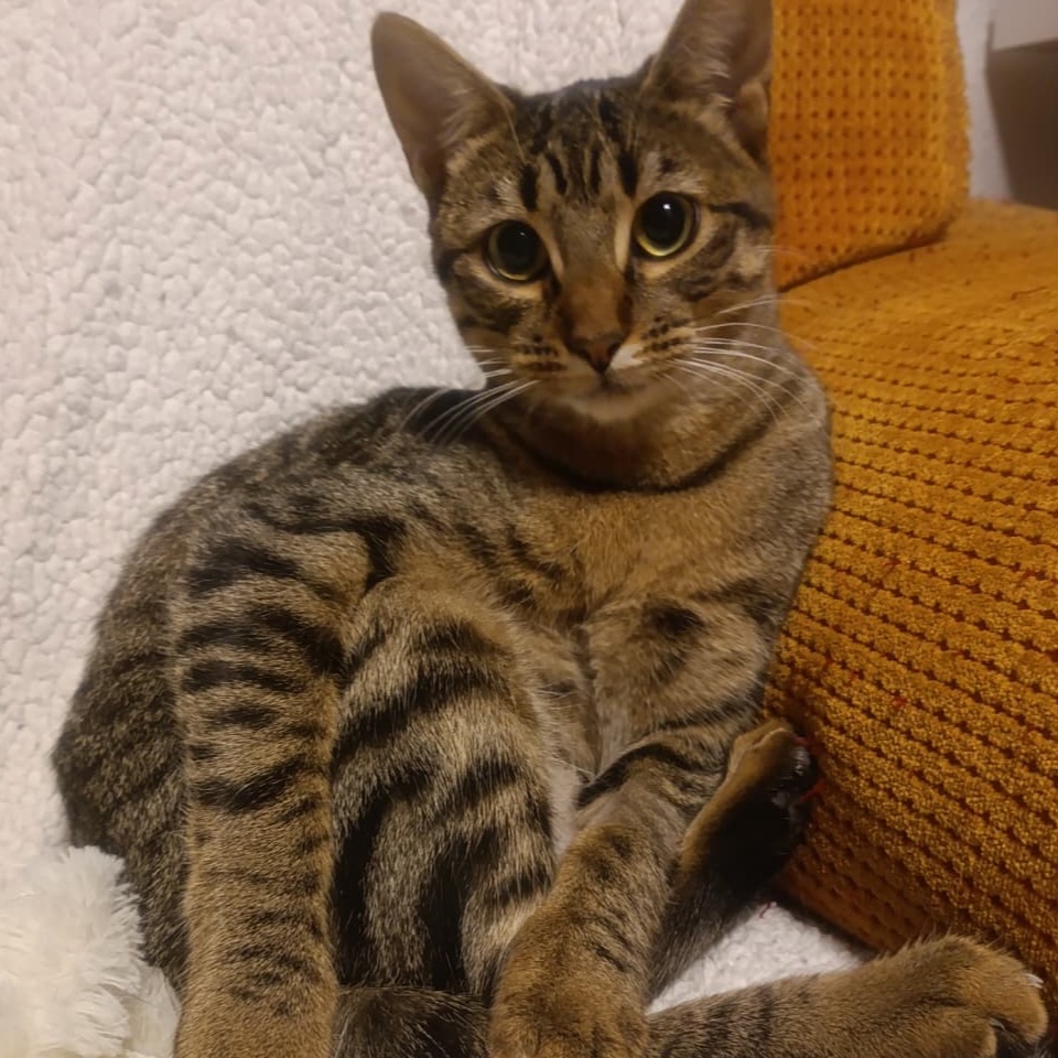 Tubi fue rescatada por los bomberos porque quedó atrapada en una tuberia de un garaje de una comunidad de vecinos cuando tenia mes y medio. Por suerte sus maullidos fueron escuchados por los vecinos que nos avisaron. Es muy buena y cariñosa, está deseando encontrar un hogar.