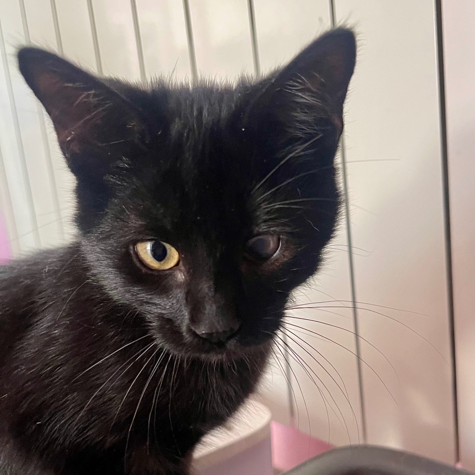 Él es Kike, un pequeño de 3 meses que solo quiere sentirse querido. Al principio puede mostrarse un poquito tímido, pero en cuanto se siente seguro se convierte en un gatito bueno, dulce y muy cariñoso 🖤. En la segunda foto podéis ver cómo estaba cuando fue rescatado: su ojito estaba muy mal y necesitaba mucha ayuda 😢. Su mami de acogida hizo todo lo posible para salvarlo, y gracias a sus cuidados hoy está sano y feliz. Ha quedado con una pequeña discapacidad en un ojito, pero eso no le impide hacer vida normal: juega, corre, come y se acurruca como cualquier otro gatito ✨. Kike solo necesita una familia que lo quiera tal y como es, sin fijarse en su diferencia, sino en su corazón enorme 💛.