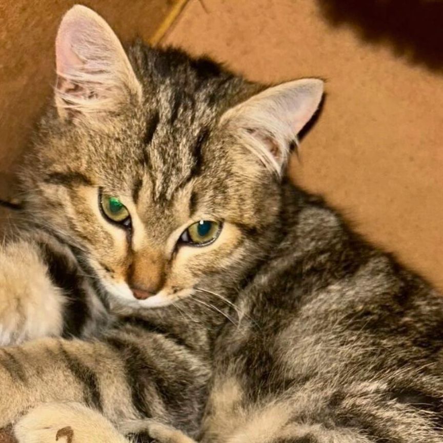 Tiguer no lo ha tenido fácil y le ha costado confiar en las personas, pero cada día da un pasito más. Es un gatito sensible, que necesita tiempo, respeto y un hogar donde nadie le pida más de lo que puede dar.