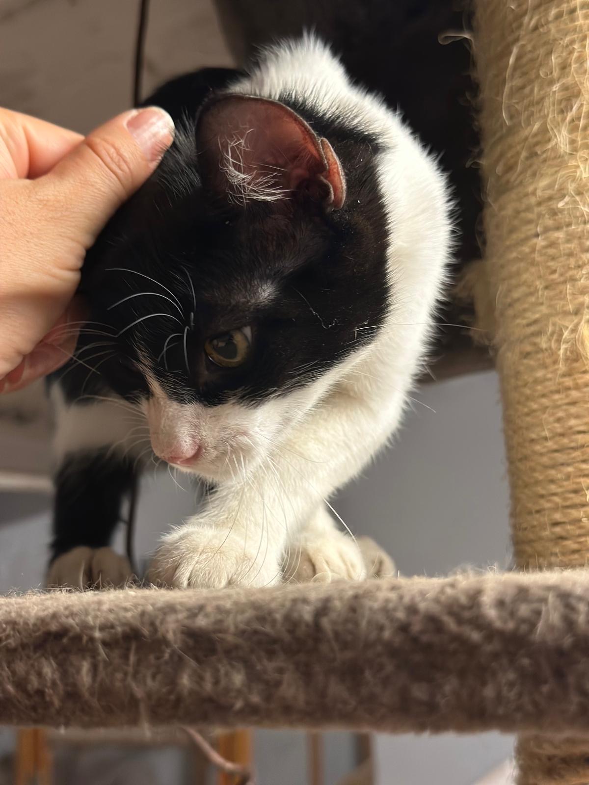 Nació en casa de acogida junto con su hermana Barbi Nunca ha estado en la calle Ahora vive en una gatera con su hermana BARBI y otros gatos esperando que alguien le quiera