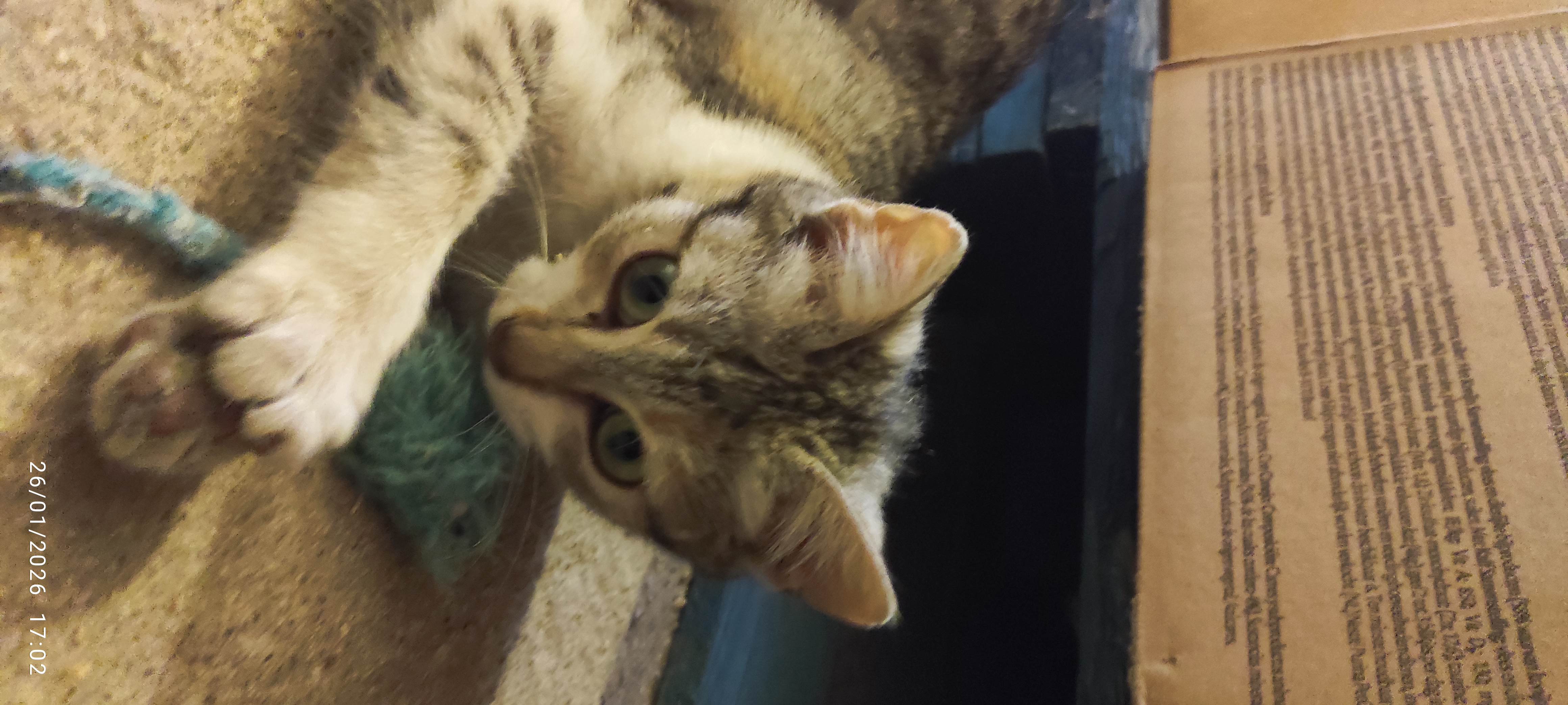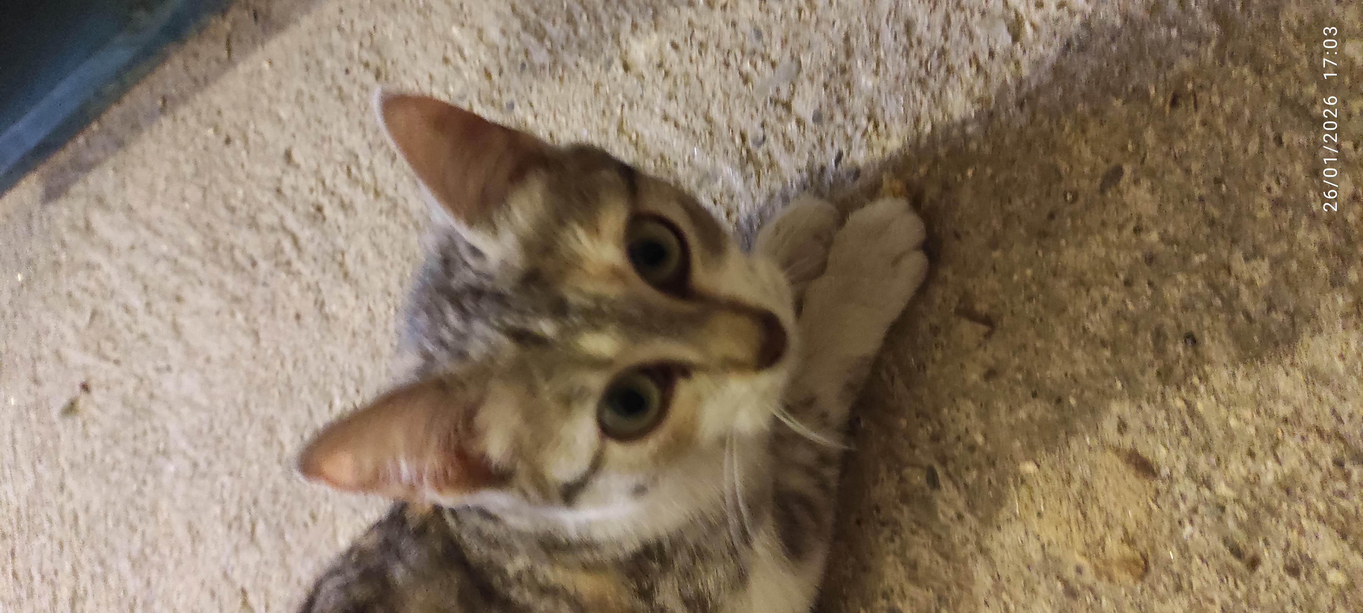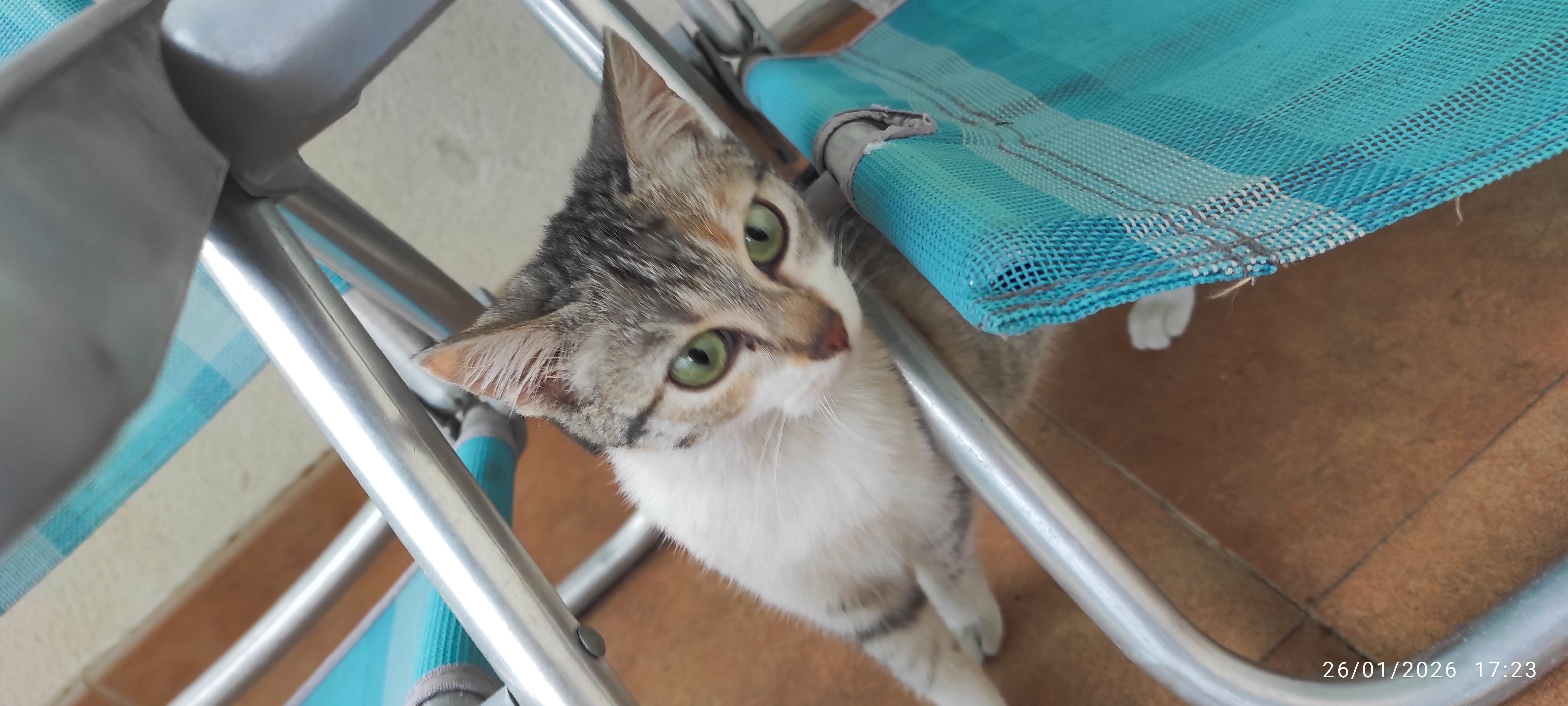 Madeline, Mady para Los amigos. Es una princesita, que fue rescatada de un cuarto de calderas de un empresa. Allí poco futuro podía tener... Es una gatita muy juguetona, dulce y con ganas de explorar y comerse el mundo. Tiene un ronroneo para todo el mundo Necesita un hogar, porque ahora está en un garaje, ya que los gatos de la casa de acogida no la aceptan.