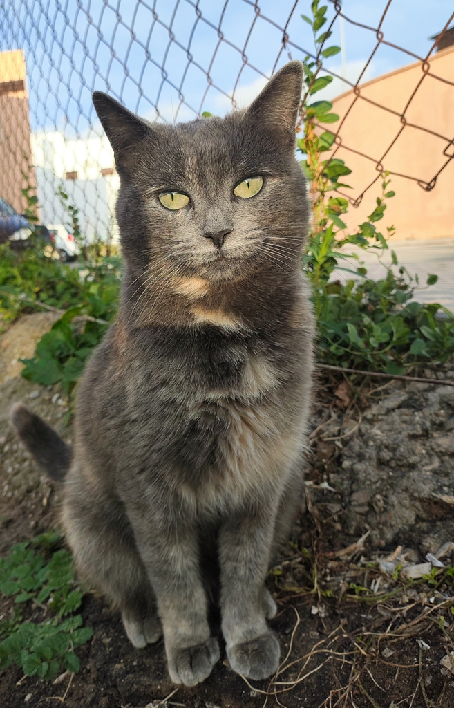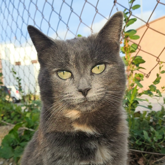 Cloe se crio en un colonia en la calle pero poco a poco fue cogiendo confianza con su alimentora demostrando ser una gata muy simpatica y cariñosa.