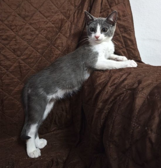 Niki es un gatito muy asustadizo que necesita un hogar tranquilo y mucho amor y paciencia. Tiene un pequeño defecto en una patita pero no le impide hacer vida normal