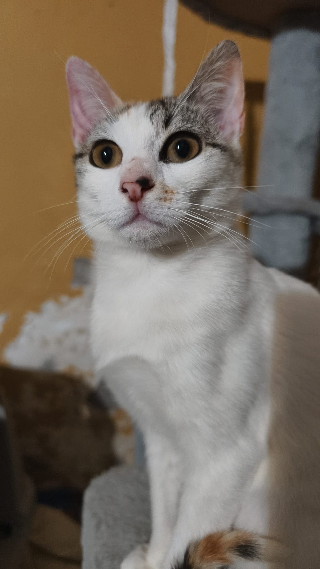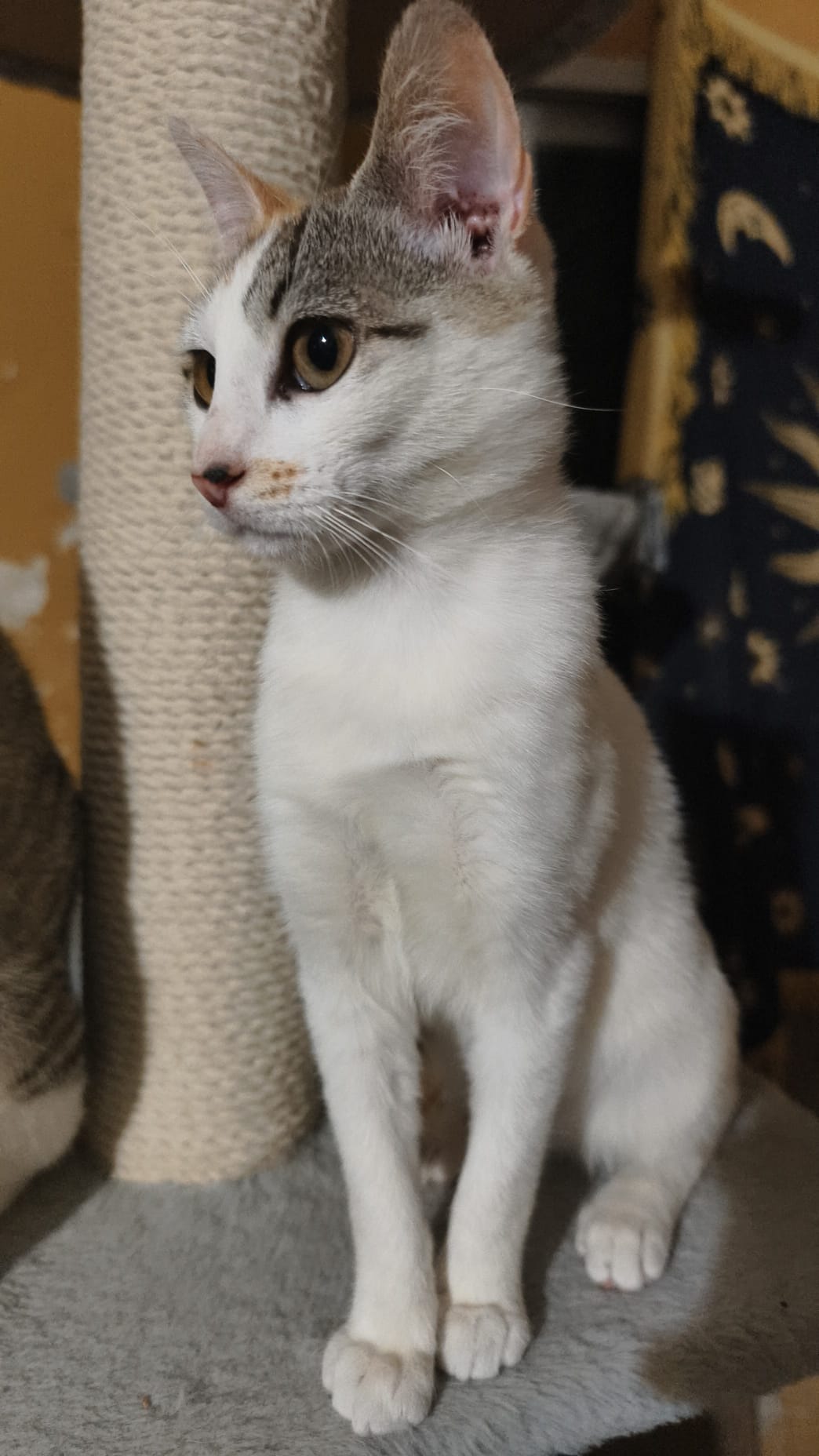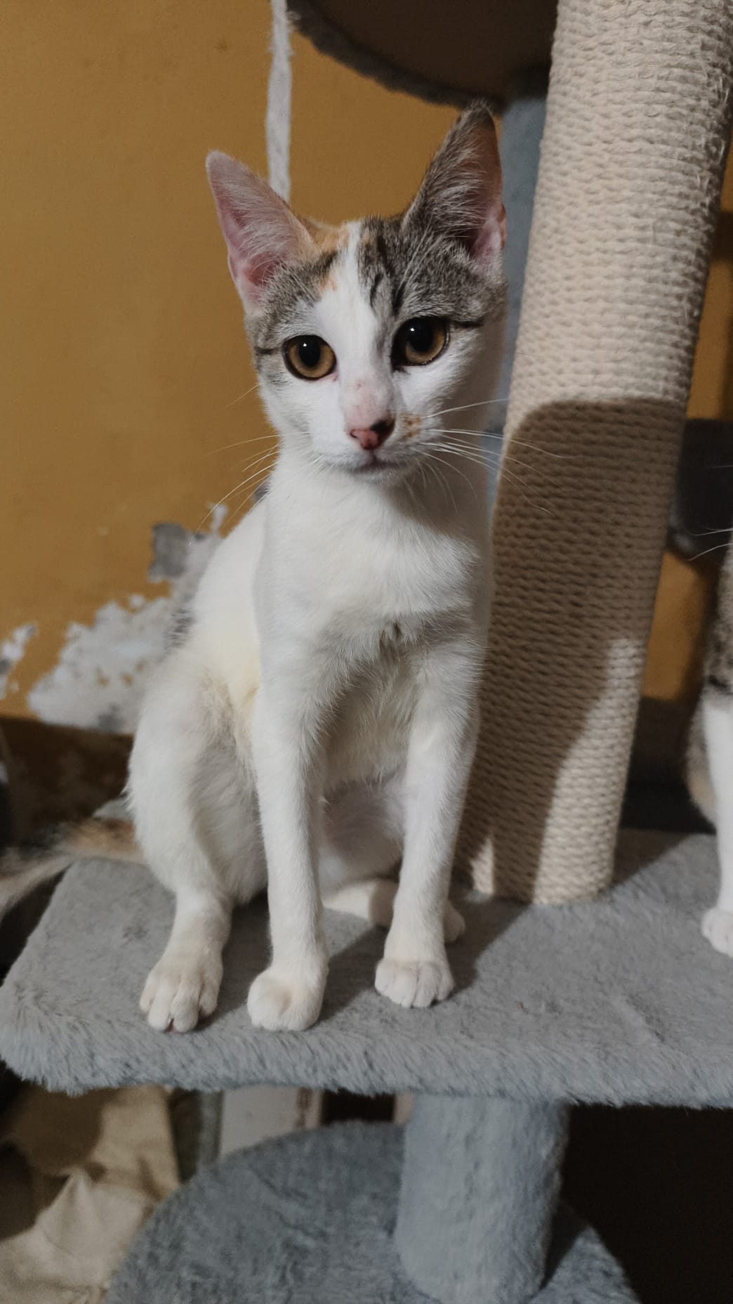 Sociable y cariñosa, un poco más tímida que su hermano Dino hasta coger confianza Imprescindible protecciones en la vivienda