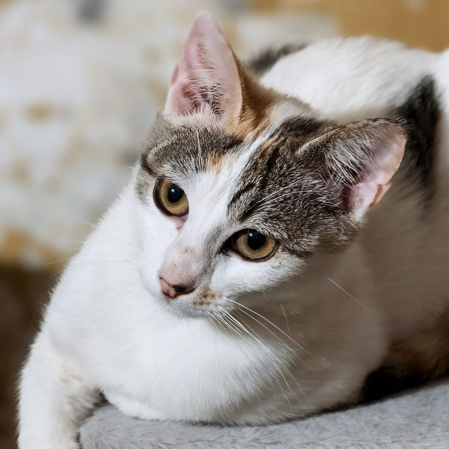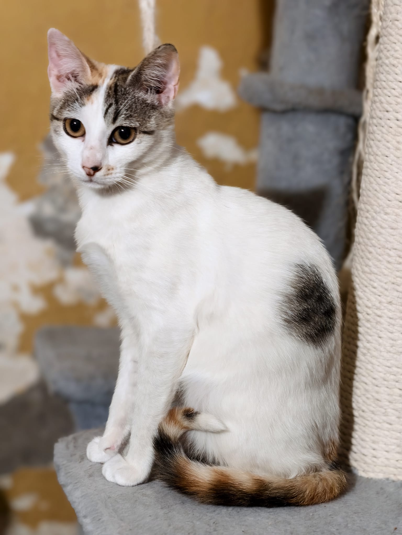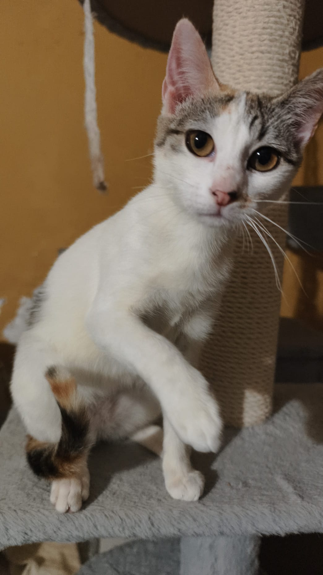 Sociable y cariñosa, un poco más tímida que su hermano Dino hasta coger confianza Imprescindible protecciones en la vivienda