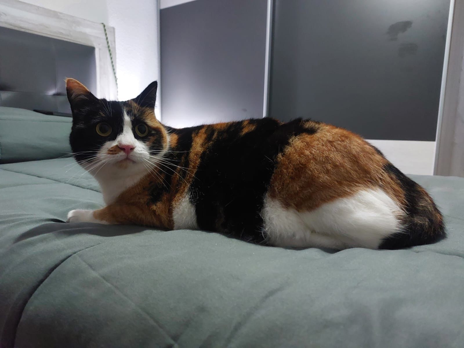 Gael hembrita tricolor de 2 años. Cariñosa y juguetona, al principio un poco tímida con extraños. Apta con perros y gatos. Está en Córdoba pero puede viajar. Preferiblemente adopción en Madrid. Imprescindible protección en ventanas y terrazas