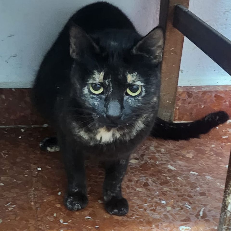 Fue encontrada junto a su hermana Manchitas y su hermano Curry, el cual ya fue adoptado. Las tenemos desde los tres meses y necesitan una casa definitiva