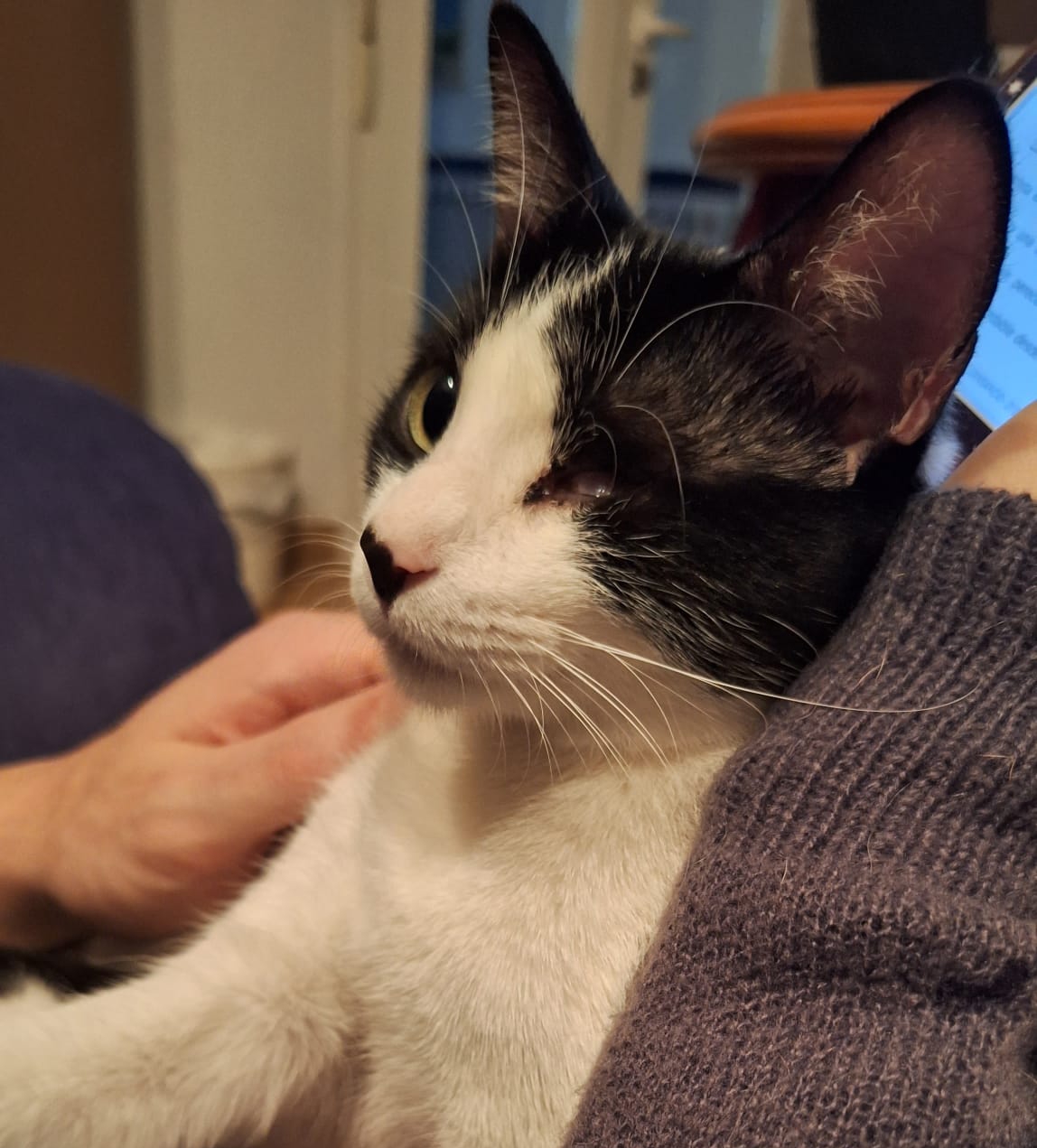 *TIANA* Sexo: Hembra Raza: Común europeo Fecha de Nacimiento: 15.03.2025 Carácter: mimosa, cariñosa y juguetona. Es una bebé.