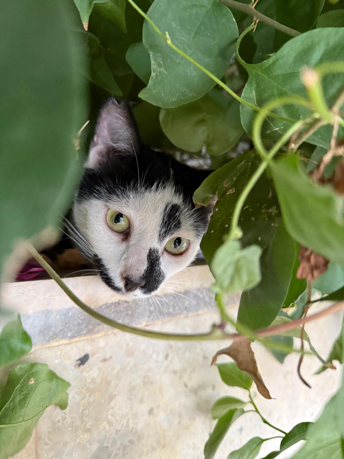 Bigotes fue encontrado cuando aún era un bebé deambulando por las calles de un pueblo de Córdoba. Buscaba comida y consuelo en la gente, ya que tenía una herida en el rabo, el cual tuvo que cortarle un poco ya que tenía bastante infección. Bigotes está completamente sano y necesita una familia que lo cuide y le de el amor que merece.