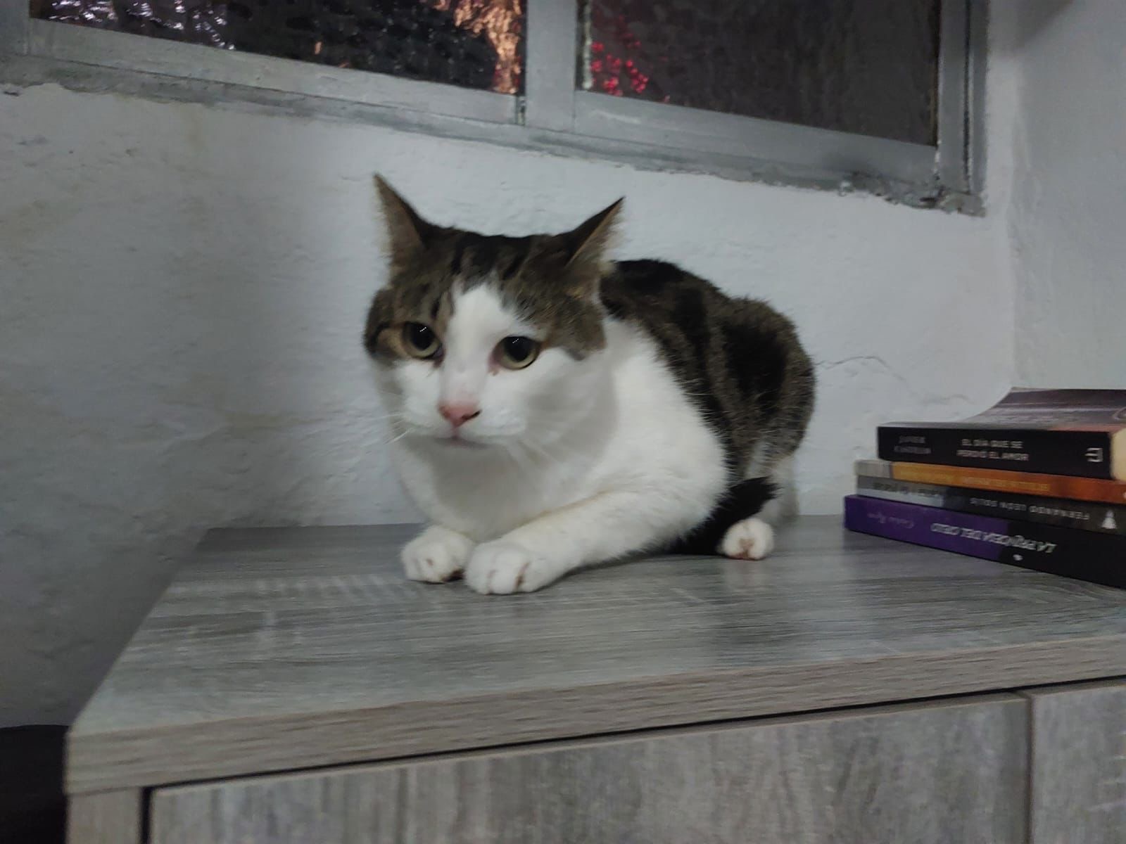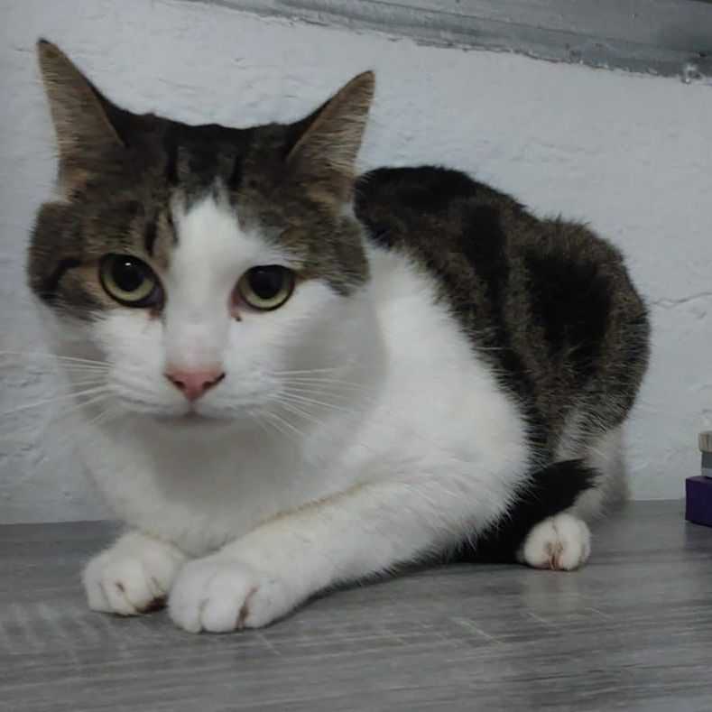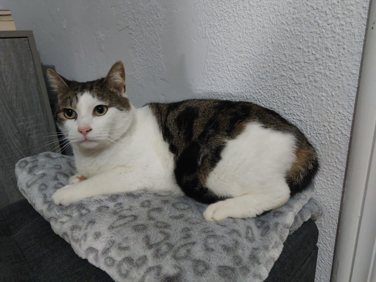 Rígel, machito gris y blanco de 3 años. Dulce y cariñoso aunque un poco tímido al principio. Apto con perros y gatos. Está en Córdoba pero puede viajar. Preferiblemente adopción en Madrid. Imprescindible protecciones en ventanas y terrazas