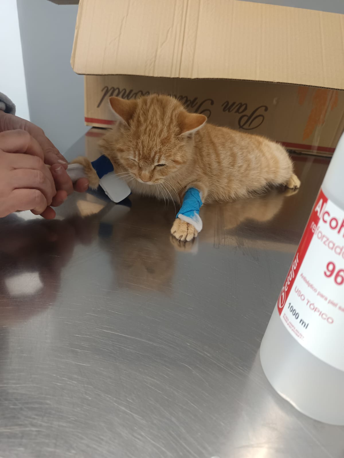 Tigrito fue arrojado por un coche la noche de Navidad y se hizo daño en una patita. Actualmente está operado y perfecto, hace vida normal. Es un gato muy mimoso y se adapta a todo. Actualmente está en casa de acogida, recuperándose, ya que le flaquean las patitas de atrás.