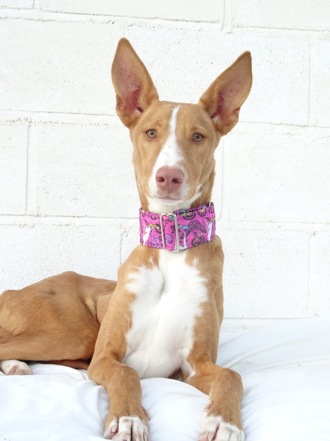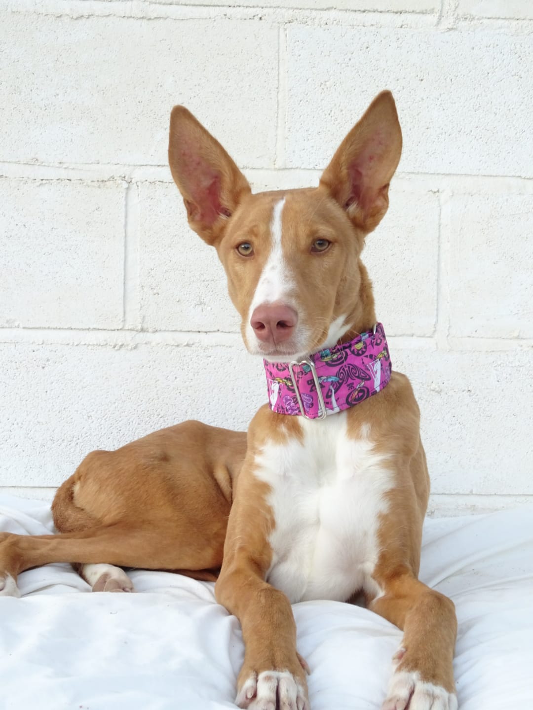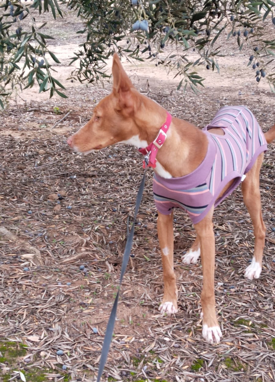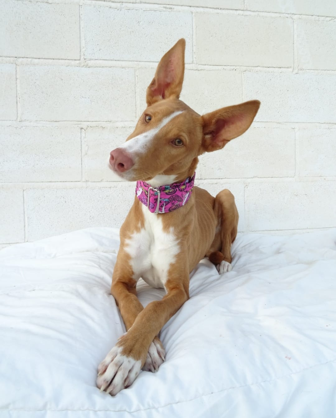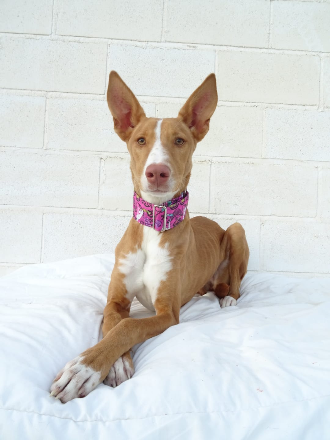 *DAMA* Sexo: hembra Raza: podenca Fecha de Nacimiento: 01.02.2025 Peso est.adulto: 16 kg Carácter: dulce, divertida, cariñosa y activa. Apta con gatos.