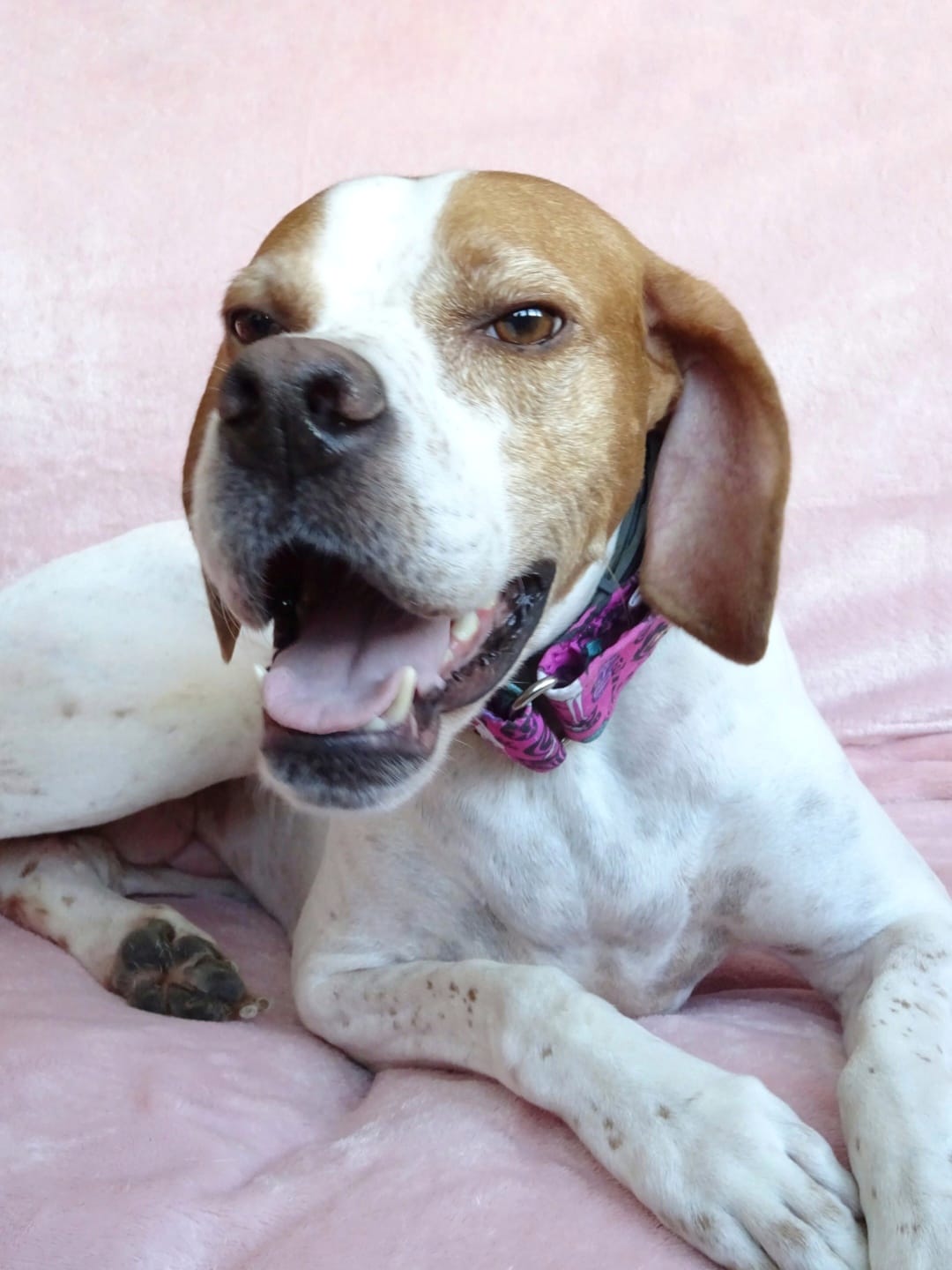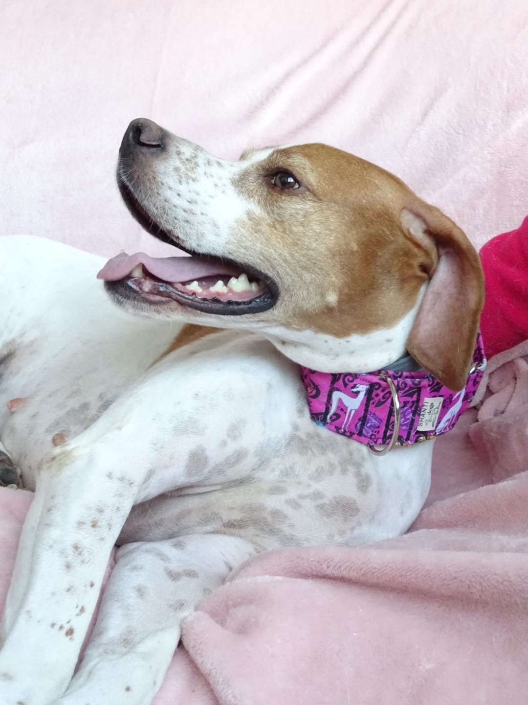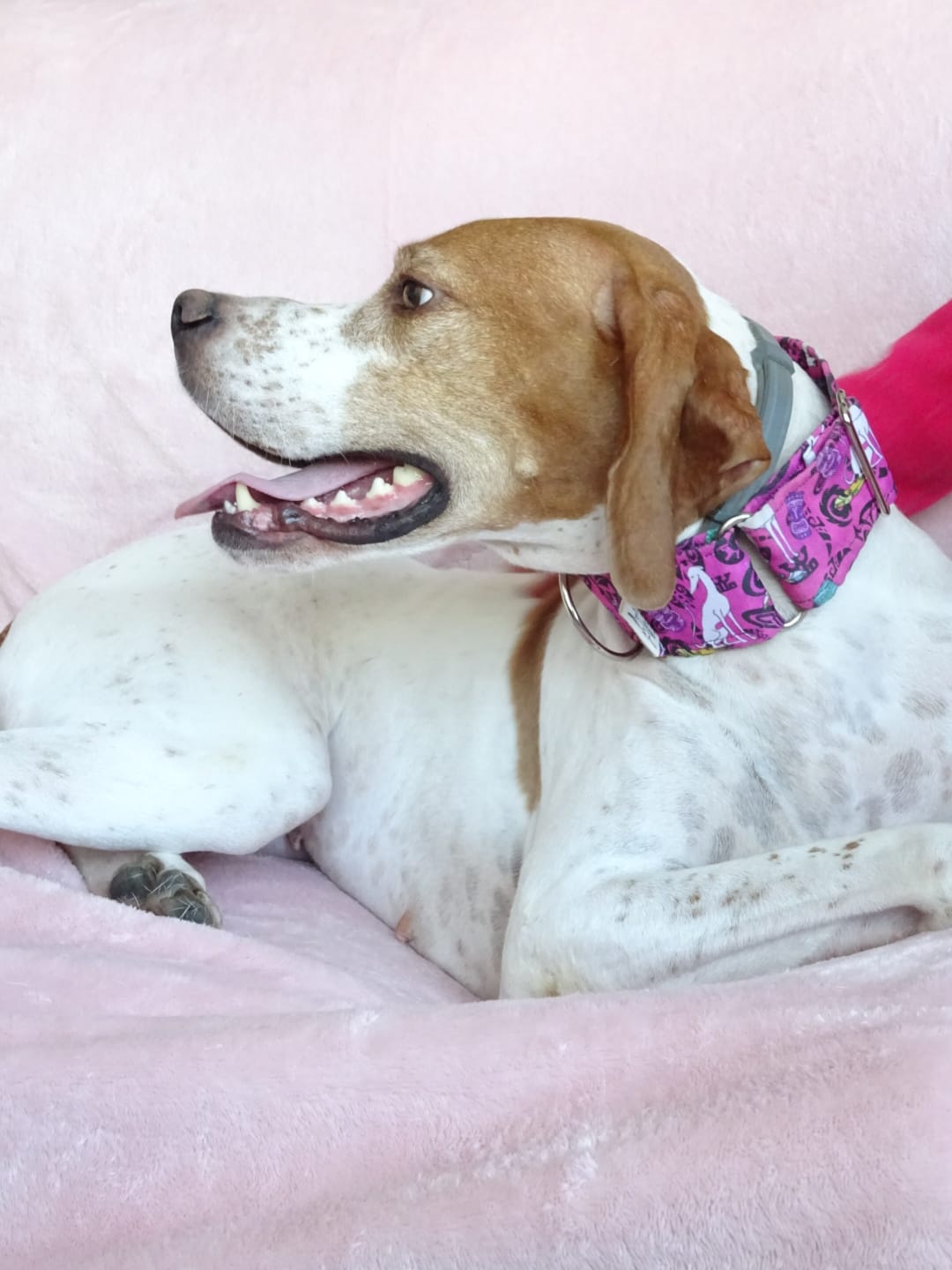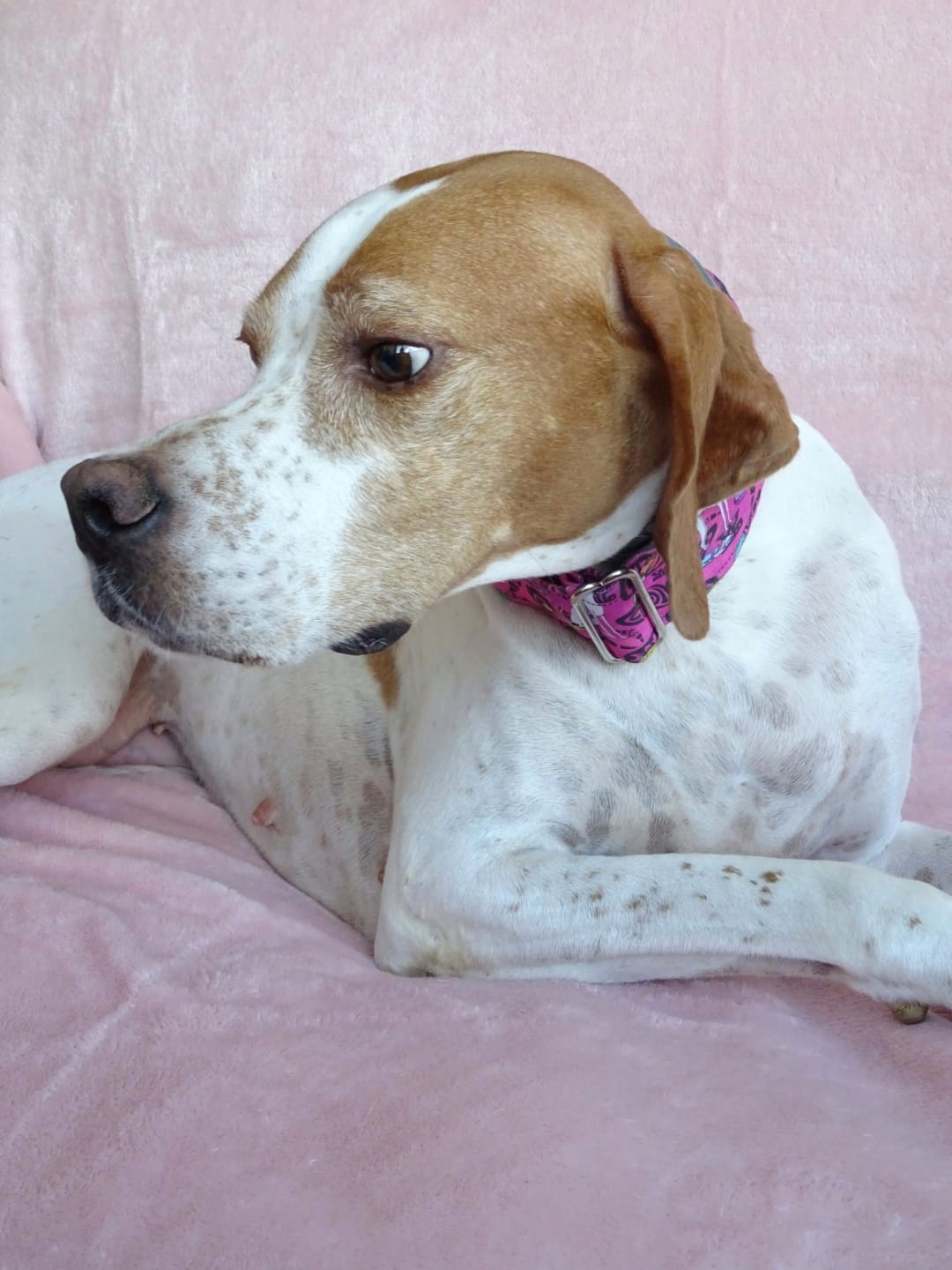 *NANAY* Sexo: hembra Raza: Pointer Fecha de Nacimiento: 10.06.2022 Peso: 23 kg Carácter: es muy buena, acostumbrada a vivir con una familia. Apta con perros y con gatos.