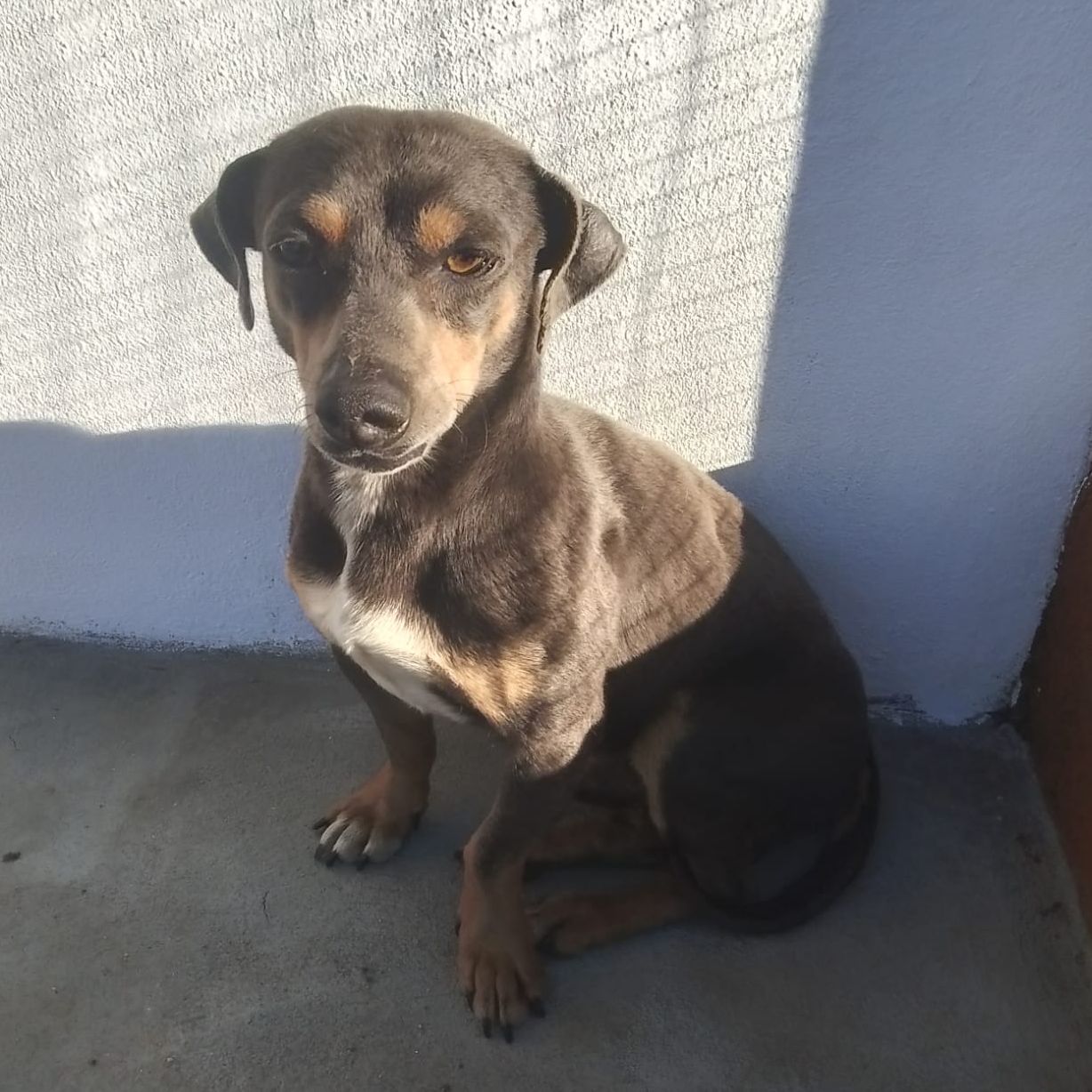 Sabemos que tenido que estar en una casa hasta que lo abandonaron porque es un perro muy muy bueno, noble y divertido. La policía lo encontró en una calle del pueblo, solito.