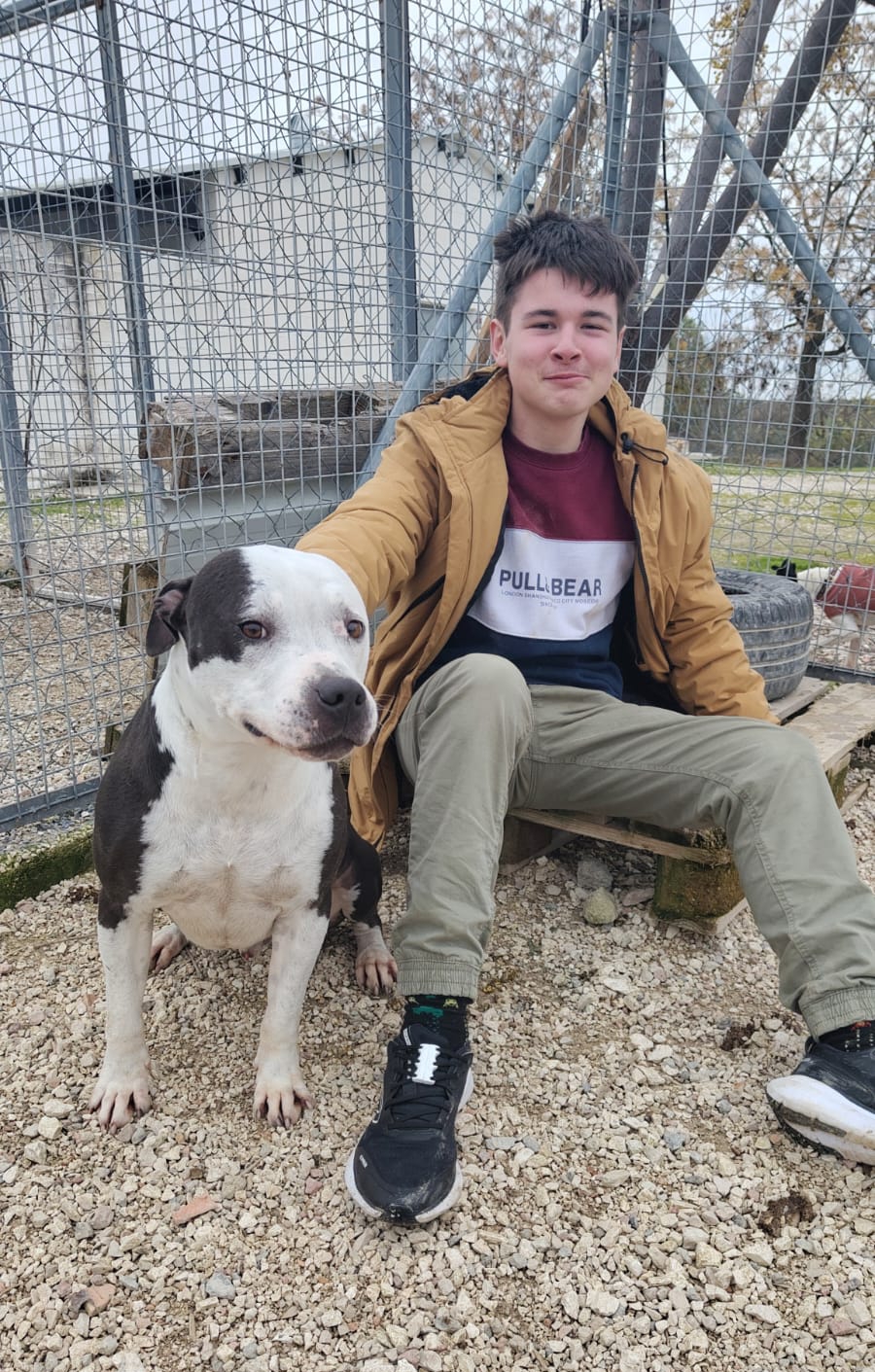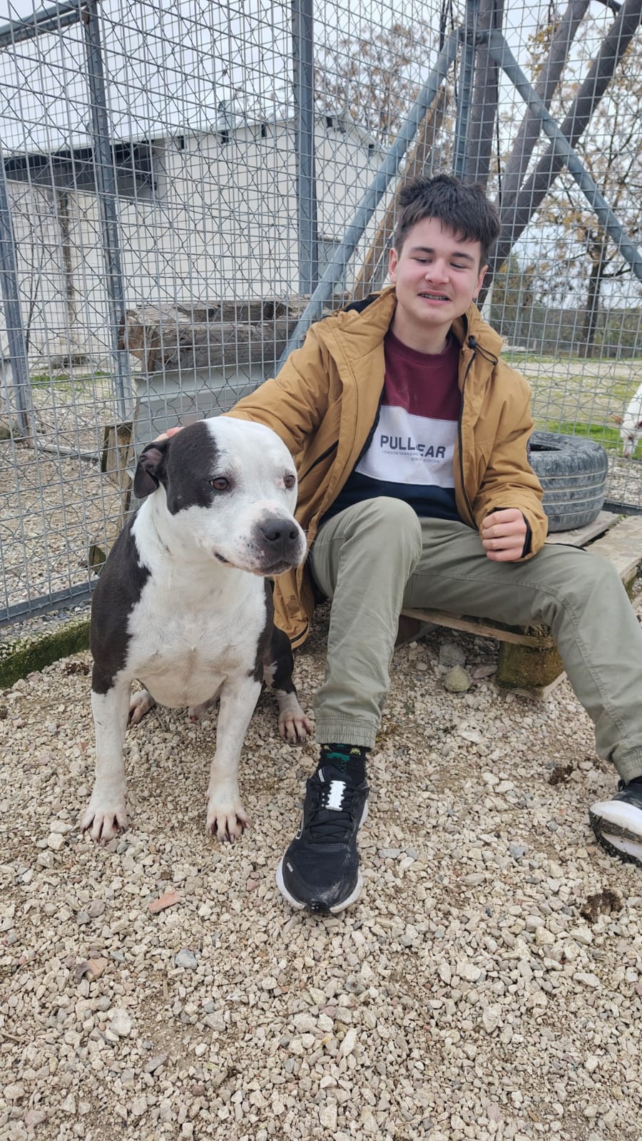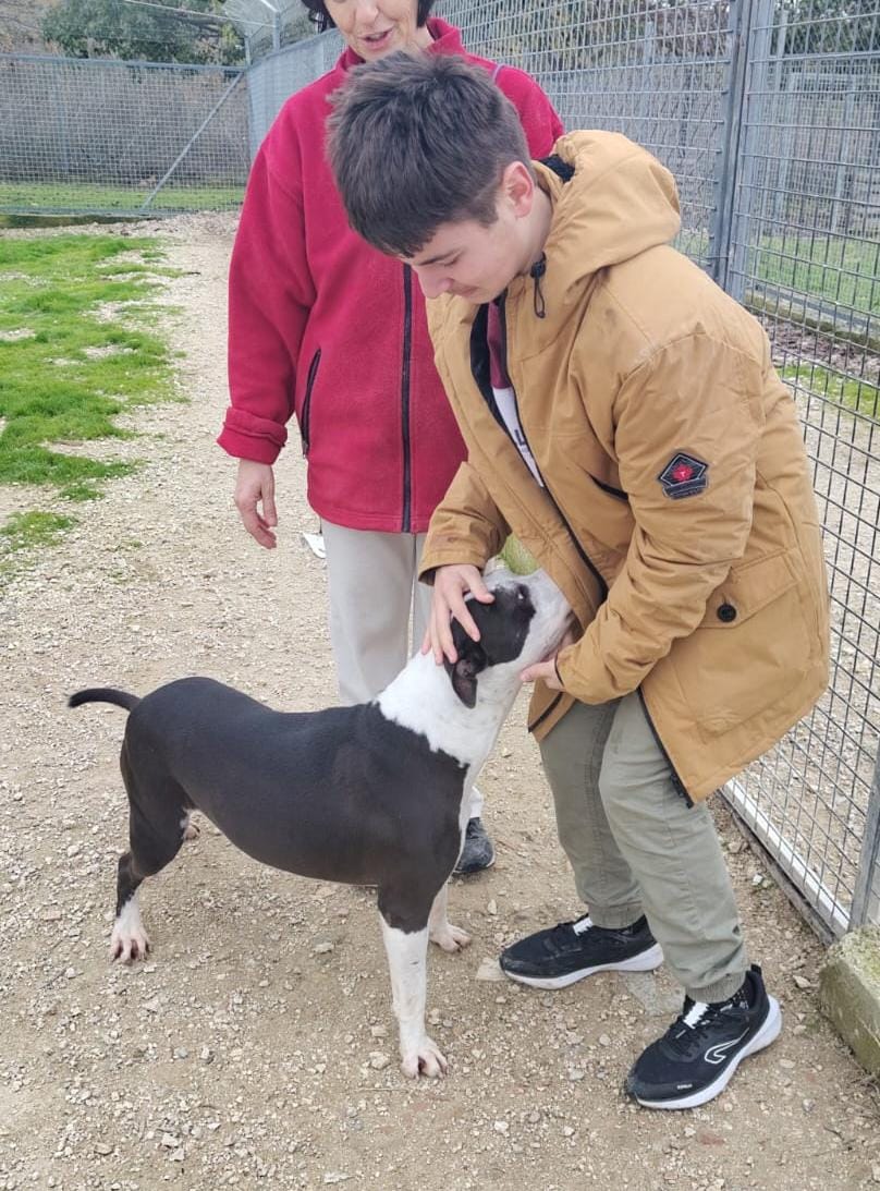 Los dueños de este precioso perro son lo más cruel que alguien se pueda imaginar. Se les vio paseando al perro por los alrededores del refugio...y después lo tiraron por encima de la valla el día de Reyes, sin importarles si se se podía romper un hueso. Les dio igual, aún sabiendo que por muy bueno que sea, por su raza no saldrá jamás adoptado, a pesar de que es lo más noble y bueno. Si quieres adoptar, apadrinar o acoger a este bombón ponte en contacto con la protectora dejanhuella@gmail.com o contacta con nosotros en los teléfonos 608 53 69 79/ 633 26 17 87. Se encuentra en Montilla ( Córdoba)pero se envía a cualquier provincia siempre que el transporte llegue a tu ciudad