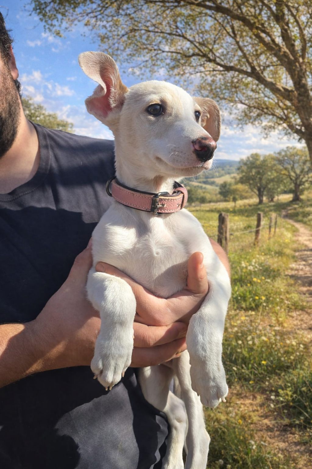 Abandonado un día de lluvia junto al arcén de la carretera como desperdicio de la cacería. Es un perro sociable y por su raza hay que tener en cuenta que hay que darle paseos diarios.