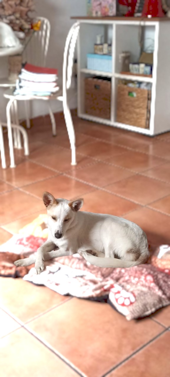 Tirado por un coche al asfalto. Se quedó solito y estaba lloviendo, hasta que una compi lo recogió. Busca una familia, en el refugio está triste. Está en MONTURQUE, CÓRDOBA.