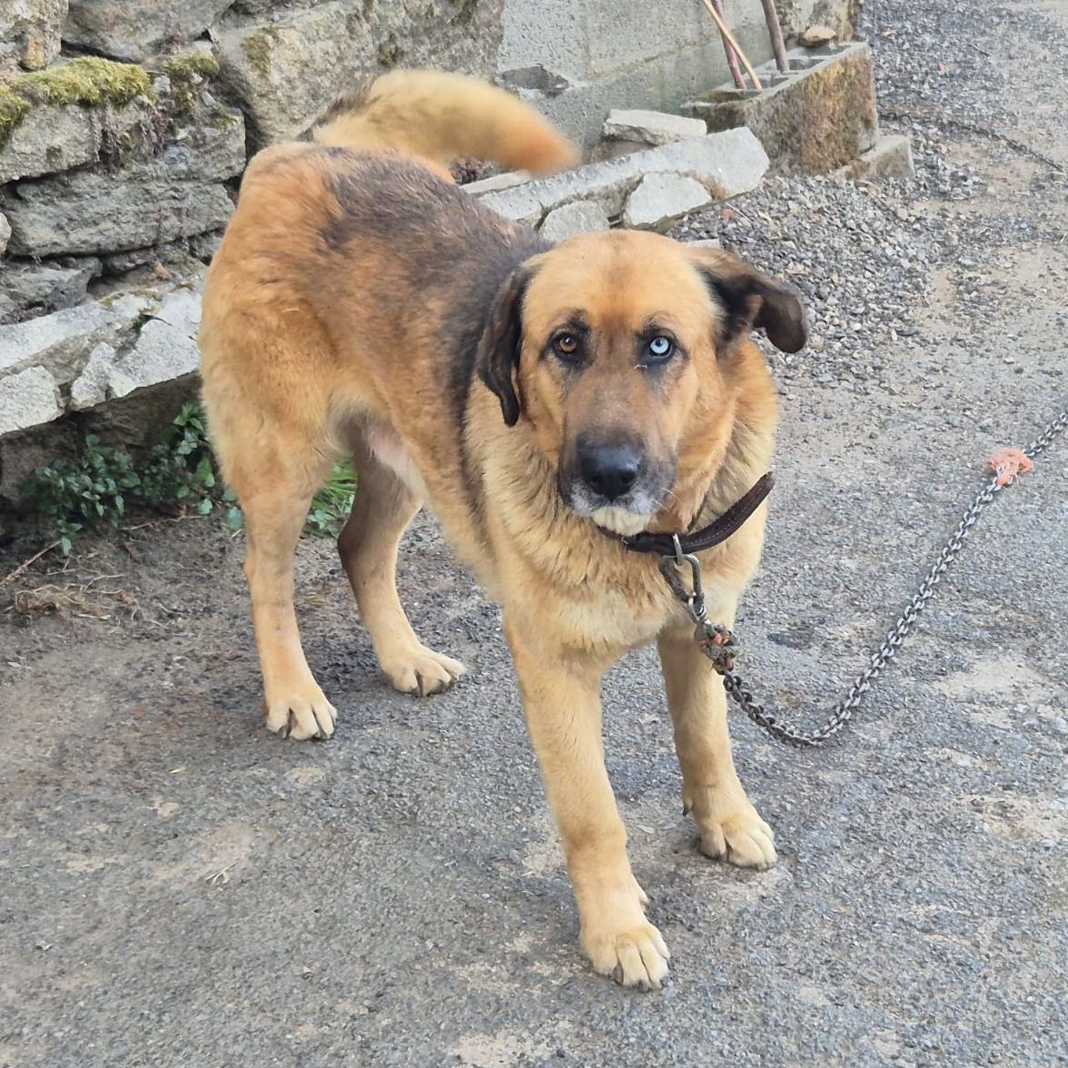 BRUNO: UN CORAZÓN GIGANTE BUSCA HOGAR Él es Bruno, un perro único, noble y majestuoso, nacido el 30 de junio de 2020. Su imponente tamaño no es nada comparado con la nobleza de su corazón. Con su manto marrón y su mirada inconfundible —un ojo azul y otro marrón—, Bruno no pasa desapercibido. Pero lo que realmente conquista es su carácter: fiel, protector, cariñoso y leal hasta el final. Bruno es un mestizo de porte fuerte y espíritu bondadoso, que merece dejar atrás la cadena y conocer lo que es un verdadero hogar: calor humano, paseos, caricias y la seguridad de pertenecer a una familia que lo quiera para siempre. Edad: 2 años Tamaño: grande Carácter: noble, dócil y protector Rasgo especial: su mirada, espejo de un alma pura. Bruno no necesita compasión, necesita una familia valiente que vea en él al compañero de vida que está destinado a ser. Si sientes que Bruno está llamando a tu corazón, contáctanos. Dale la oportunidad de ser feliz… y descubre la lealtad en su máxima expresión. Adopta a Bruno: tu guardián, tu amigo, tu familia. Conócenos: https://linktr.ee/catydogasociacion Escríbenos a: info@catydog.org WhatsApp: +34 641 47 58 03 (No se atienden llamadas) Donde cada ladrido, encuentra un hogar.