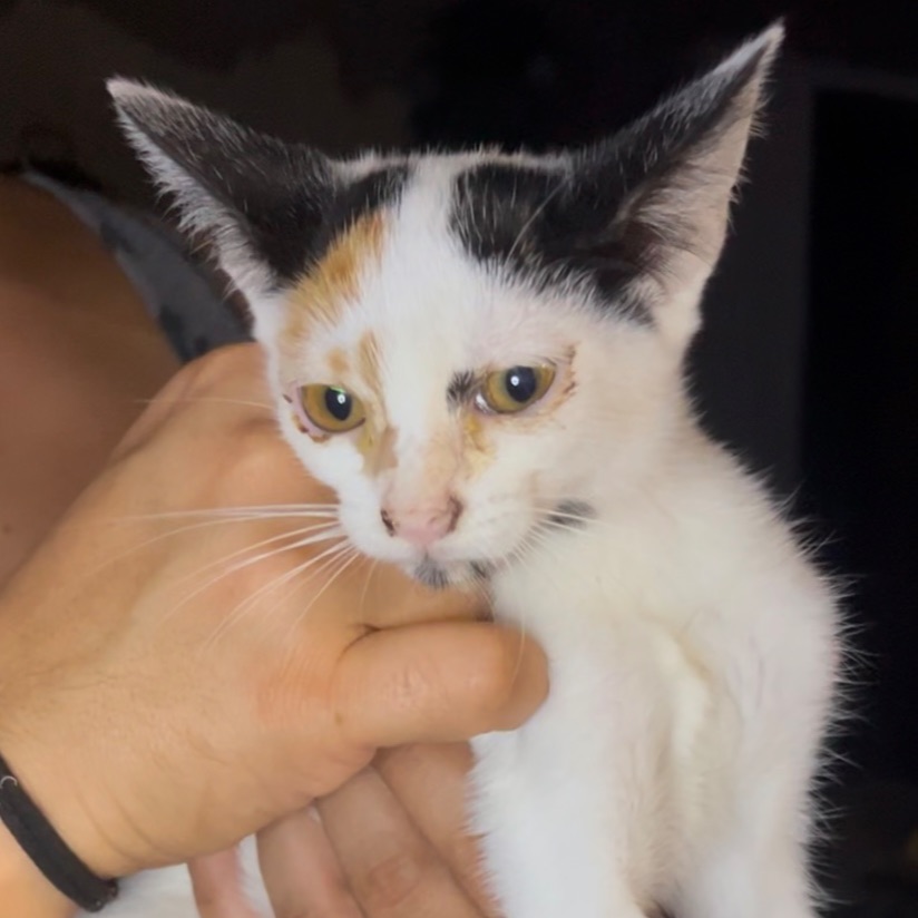 Su mamá es una gata de una colonia que todavía no estaba esterilizada. Cuando tuvo a los bebés, los recogimos a todos para darle un buen hogar.