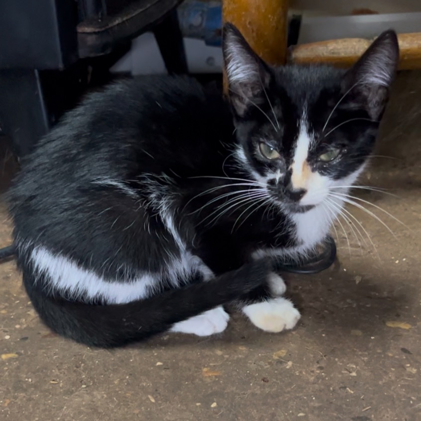 Su mamá es una gata de una colonia que todavía no estaba esterilizada. Cuando tuvo a los bebés, los recogimos a todos para darle un buen hogar.