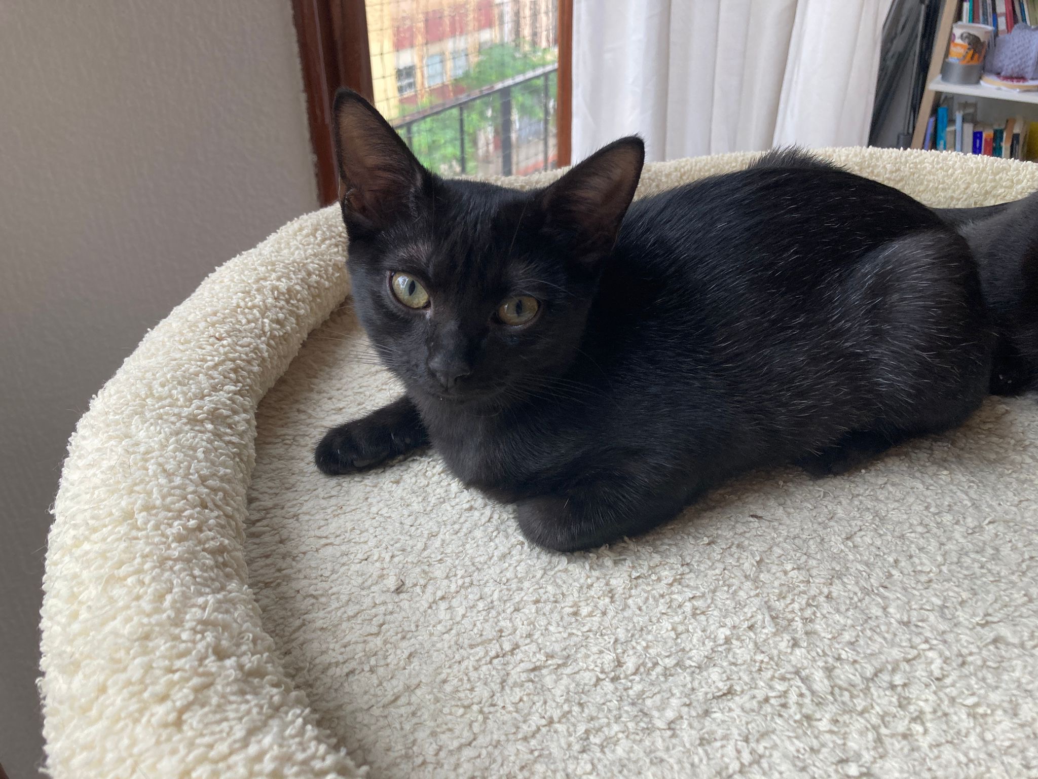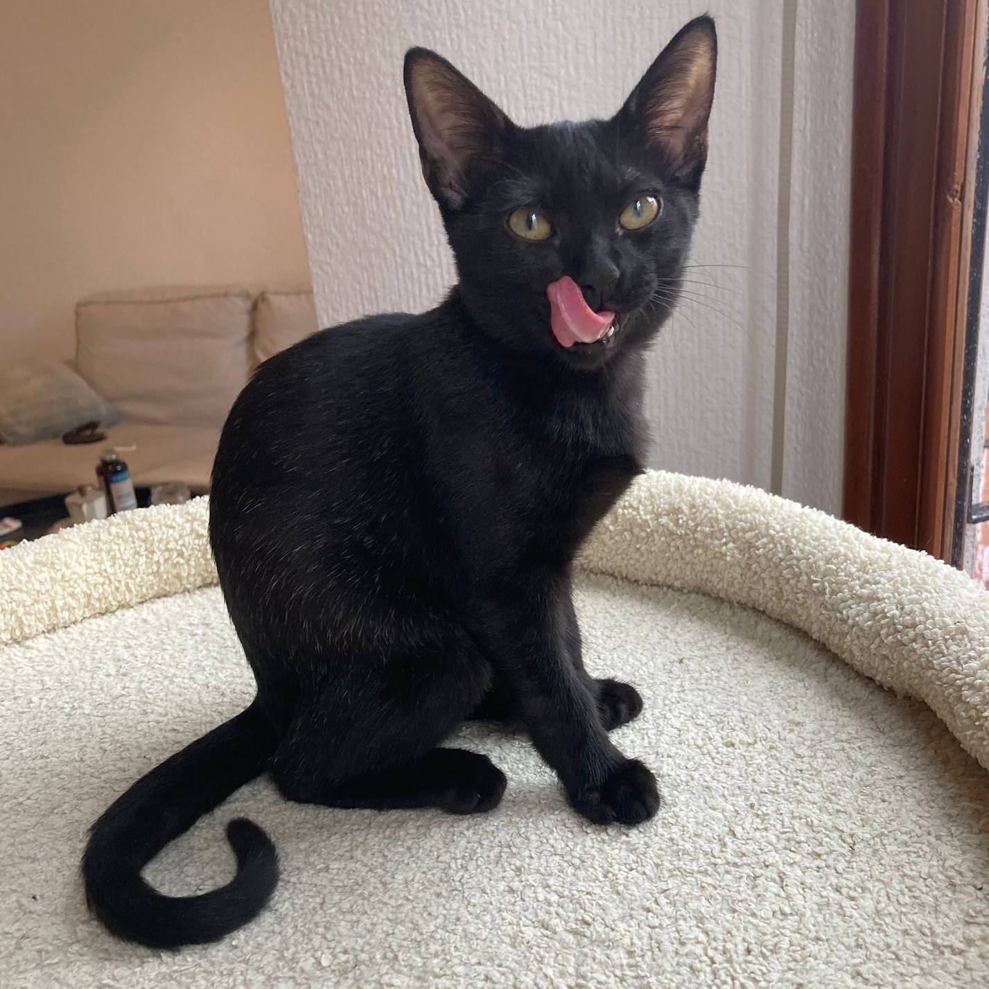 Ahora tiene dos meses y medio y ya está lista para encontrar un nuevo hogar. Es muy cariñosa.