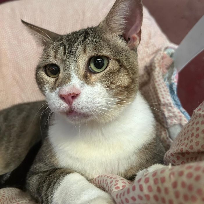 Jazz fue encontrado herido en la calle, tenía la mandíbula rota. Se operó y ahora es un gatito feliz y cariñoso que solo busca mimos.
