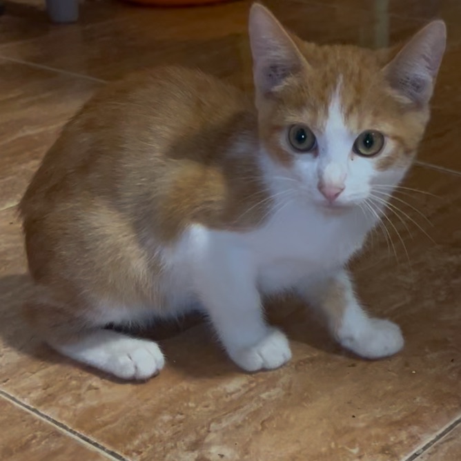 Su mamá es una gata de una colonia que todavía no estaba esterilizada. Cuando tuvo a los bebés, los recogimos a todos para darle un buen hogar.