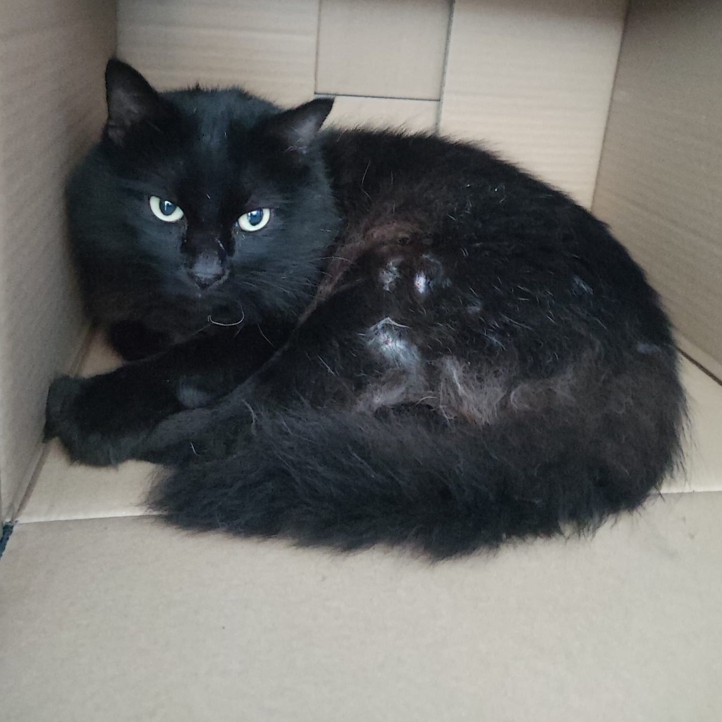 Plutón fue rescatado junto a 13 gatos más de una casa okupada. Estaban en pésimas condiciones.